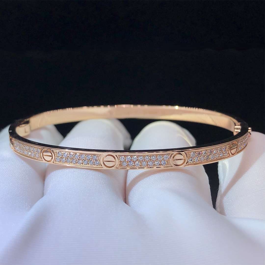 18K Rose Gold Cartier LOVE Small Model Pave Diamonds Bracelet N6710717
