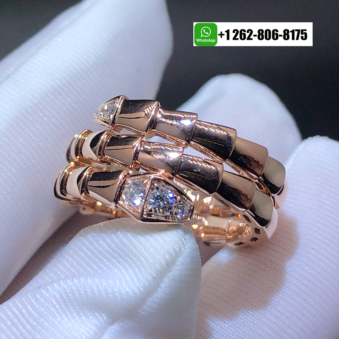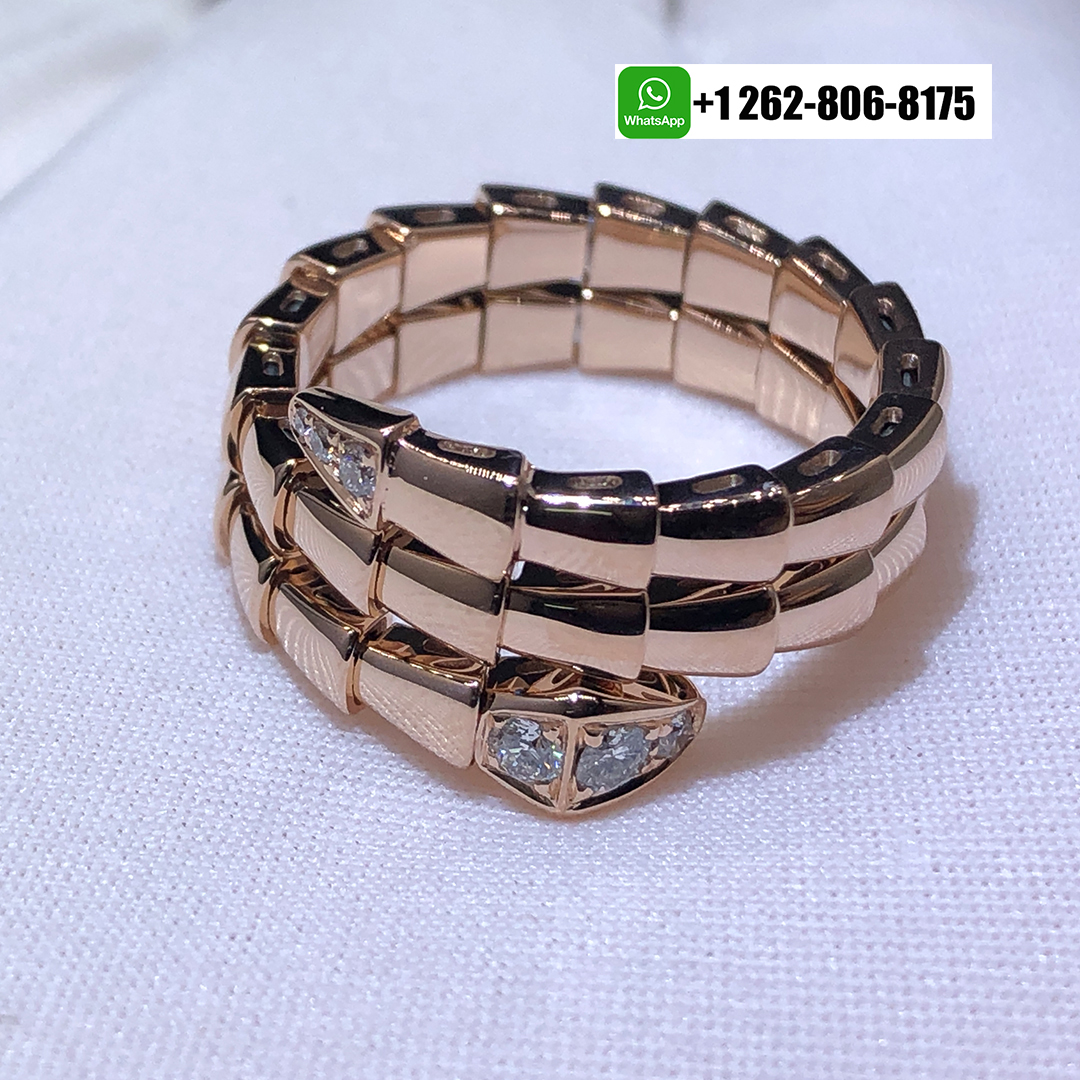 Bvlgari 18k Rose Gold and Diamond Serpenti Viper Two-coil Ring 357876
