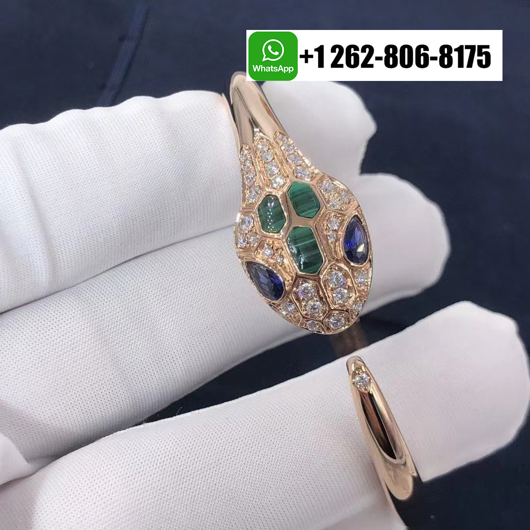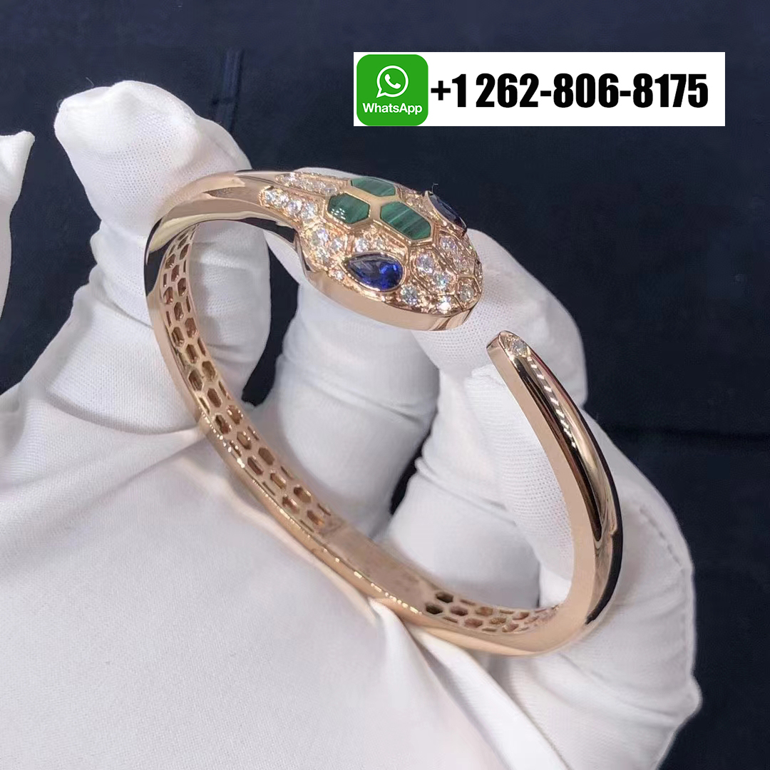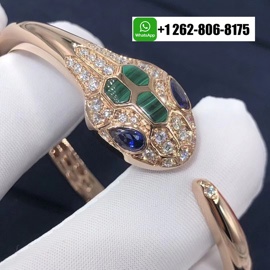 Bvlgari 18k Rose Gold Serpenti Seduttori Bracelet with Malachite Diamonds and Sapphire Eyes 356196