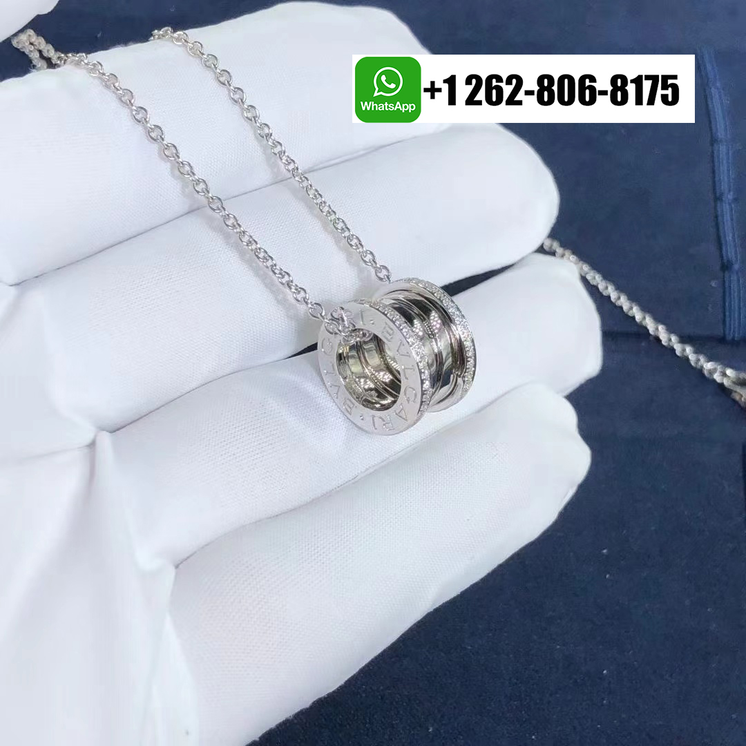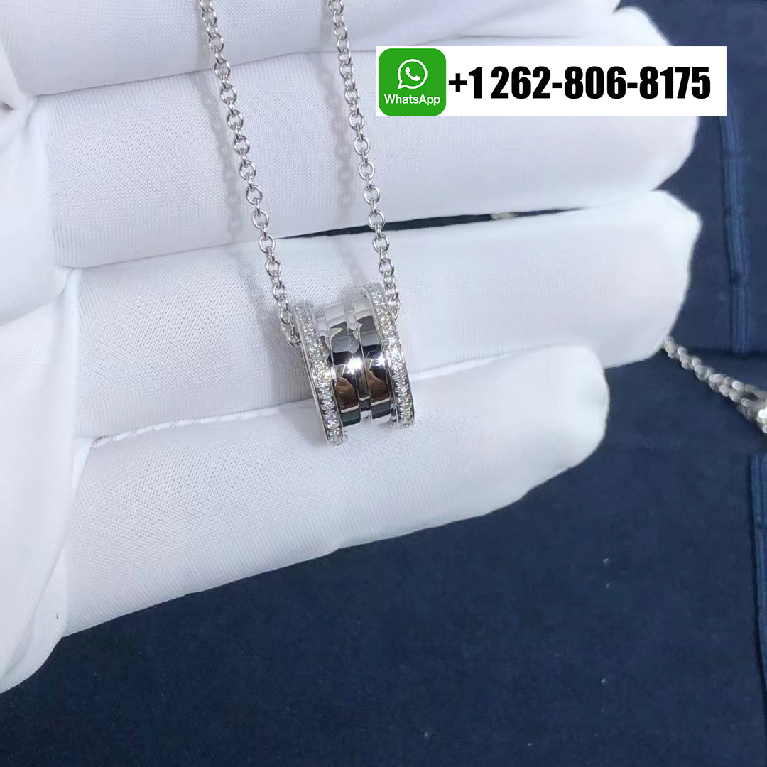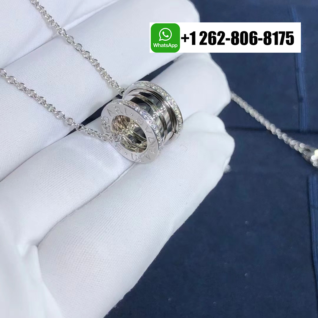Bvlgari 18k White Gold B.zero1 Pendant Necklace with Pavé Diamonds 350054