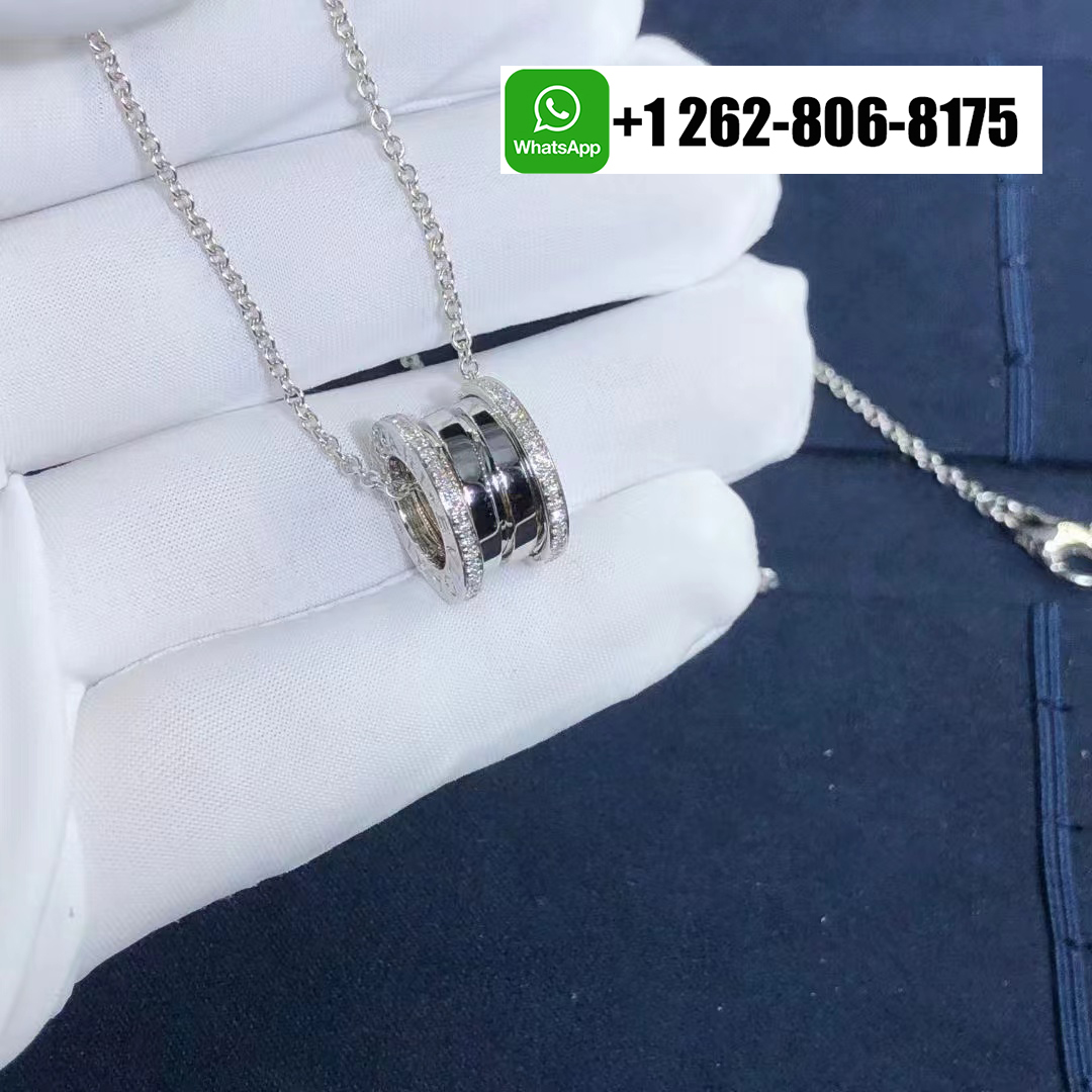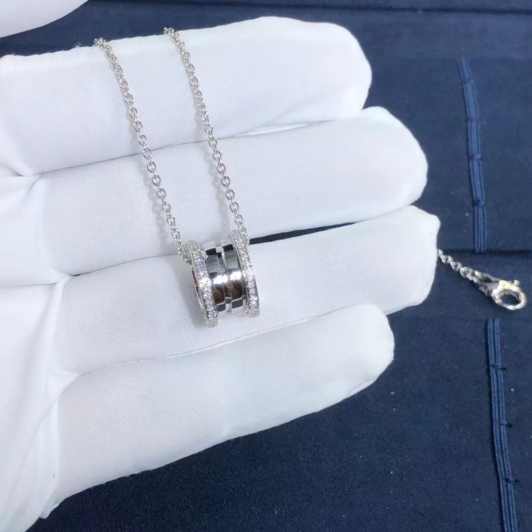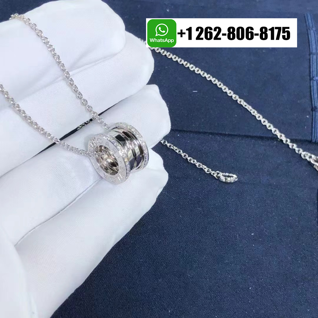Bvlgari 18k White Gold B.zero1 Pendant Necklace with Pavé Diamonds 350054