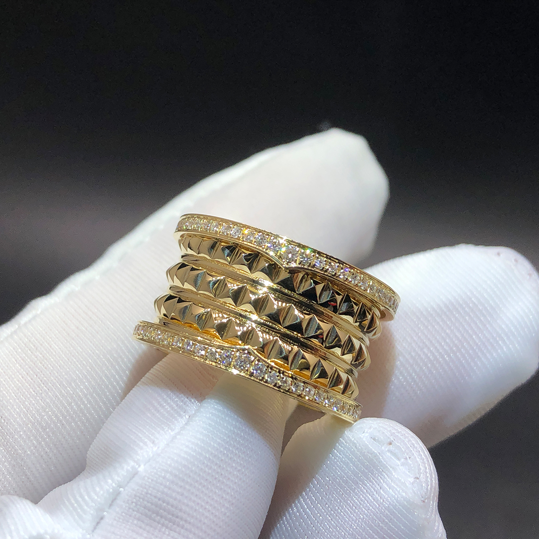 Home / Bvlgari Jewelry / Bvgalri Rings / Bvlgari B.zero1 Rock 4 Band 18k Yellow Gold Ring with Studded Spiral and Pavé Diamonds