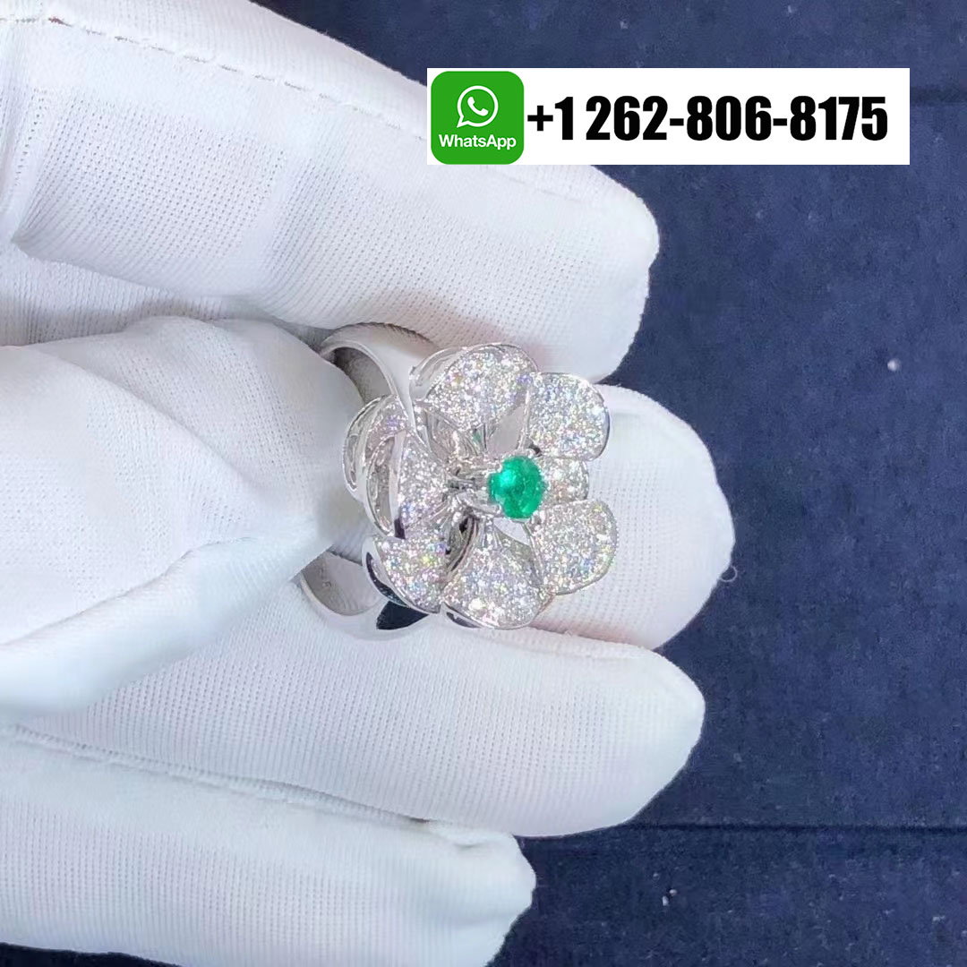 Bvlgari Divas Dream Diamond and Emerald Ring 18k White Gold