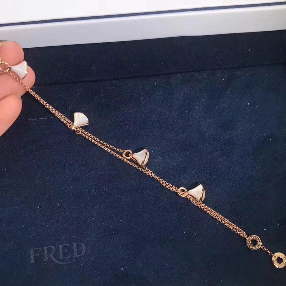 Bvlgari Divas’ Dream Mother of Pearl 4 Charms Chain Bracelet 18K Rose Gold