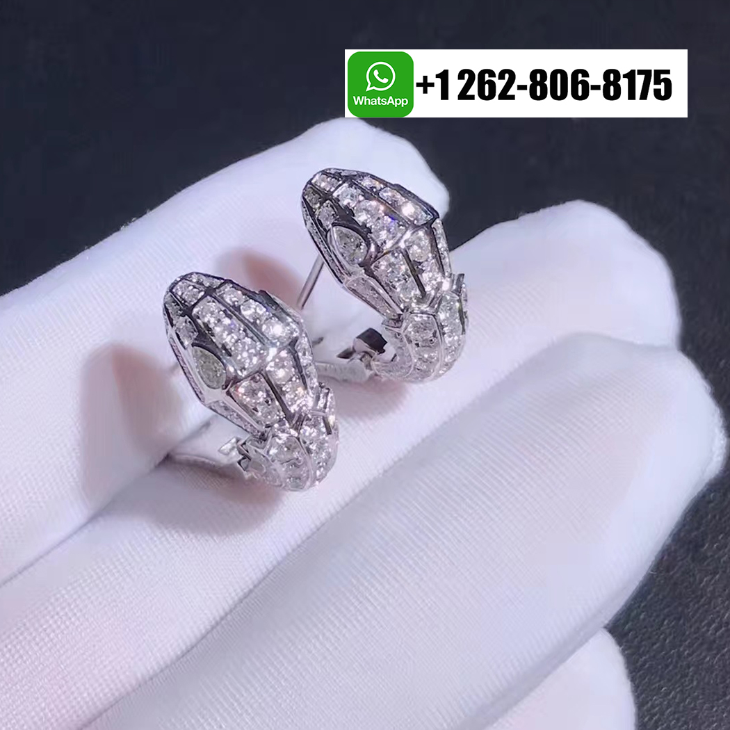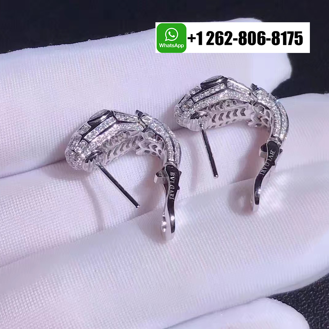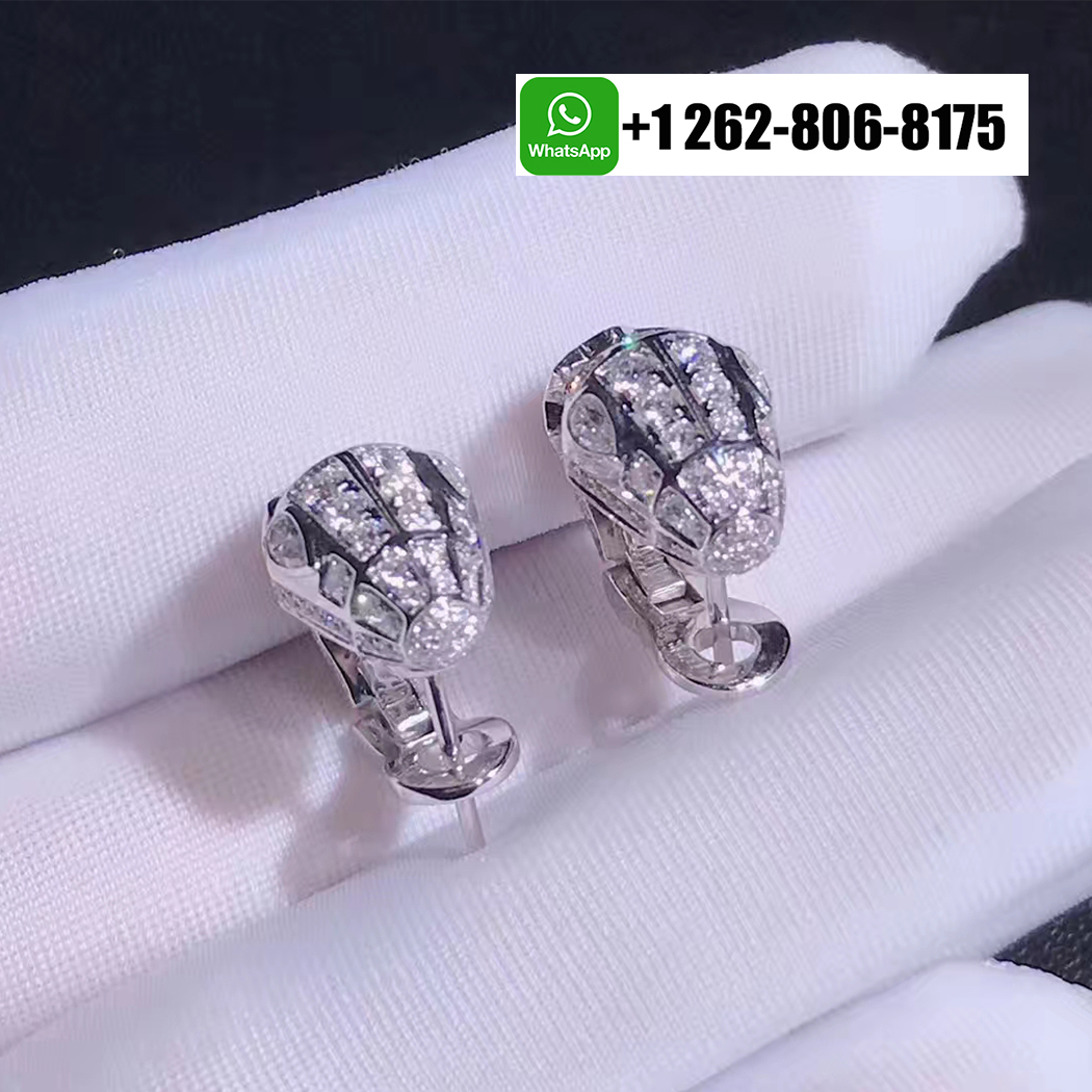 Bvlgari Serpenti Full Pave Diamond High Jewelry Earrings 18k White Gold