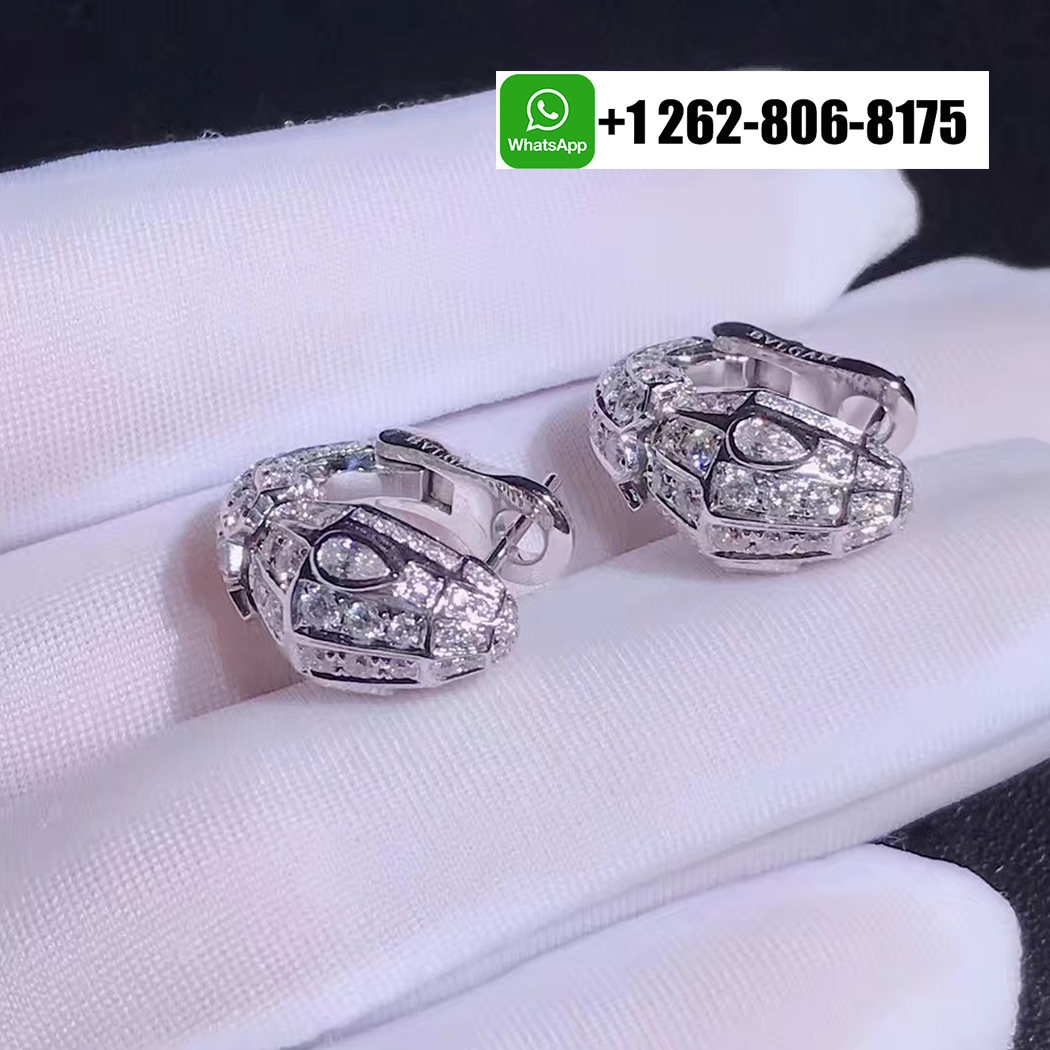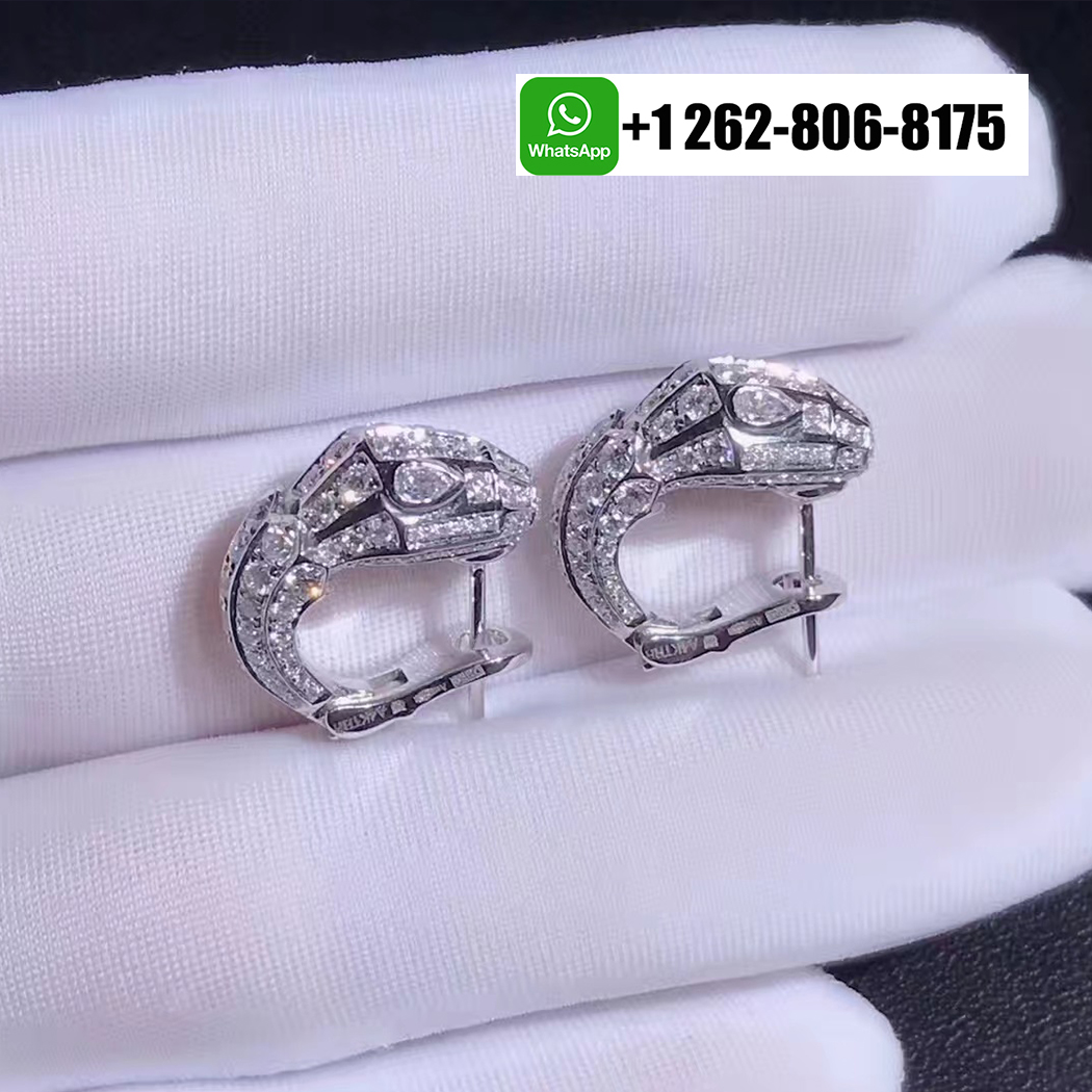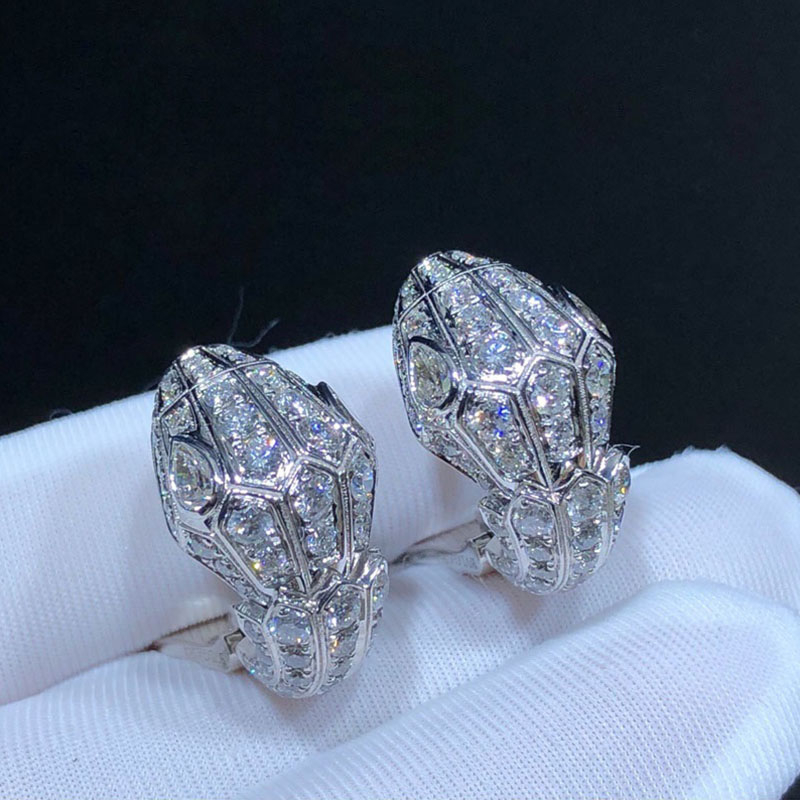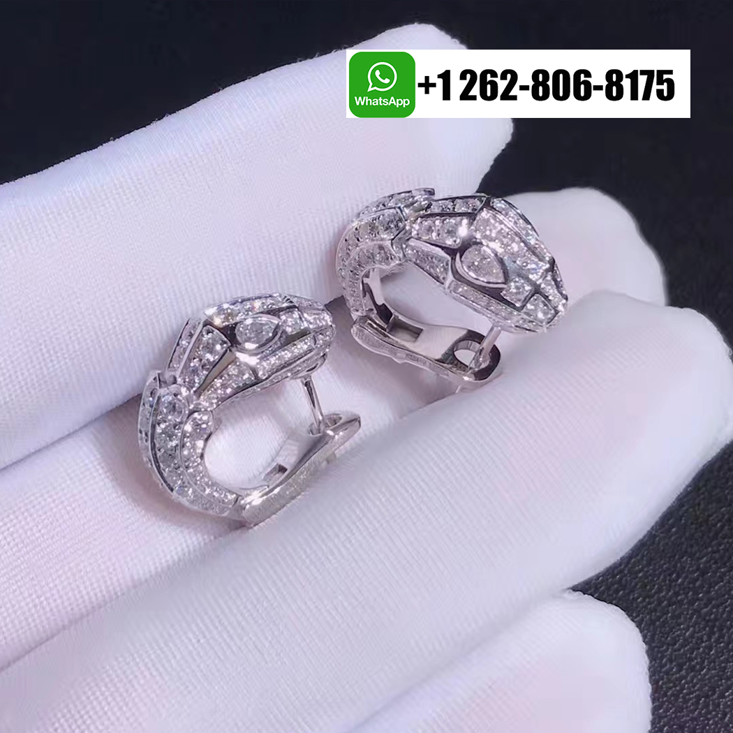 Bvlgari Serpenti Full Pave Diamond High Jewelry Earrings 18k White Gold