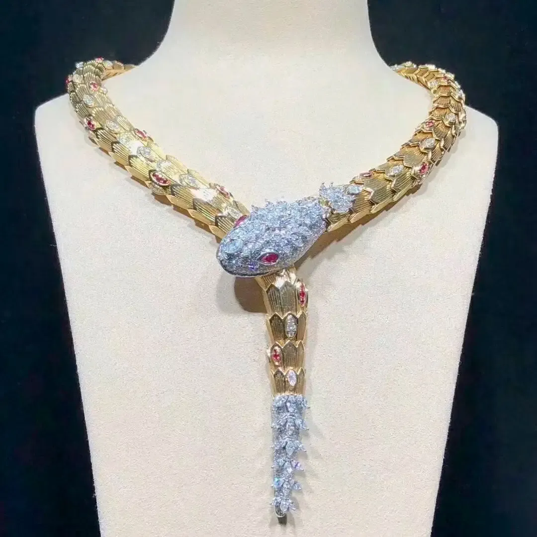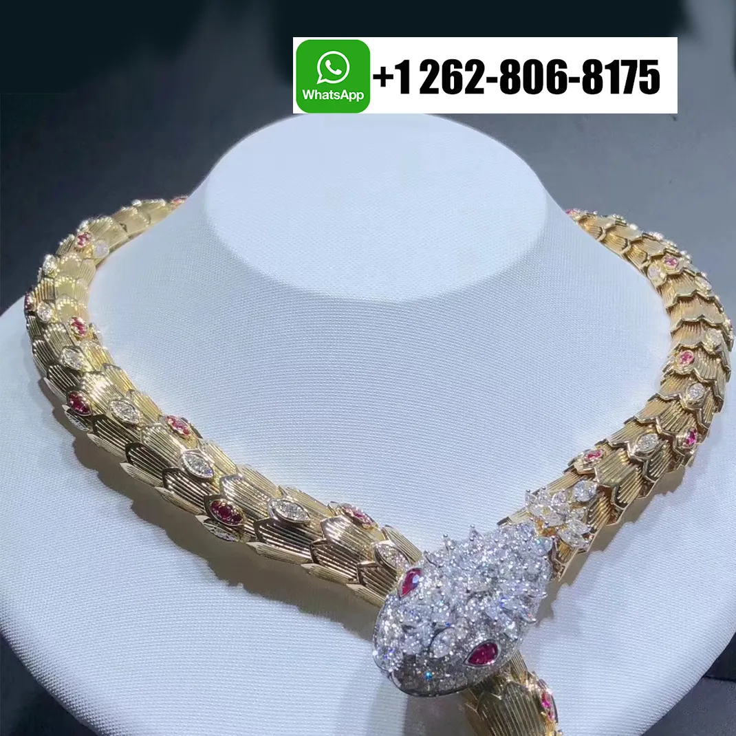 Bvlgari Serpenti High Jewelry Necklace 18k Yellow Gold with Diamonds and Ruby Eyes