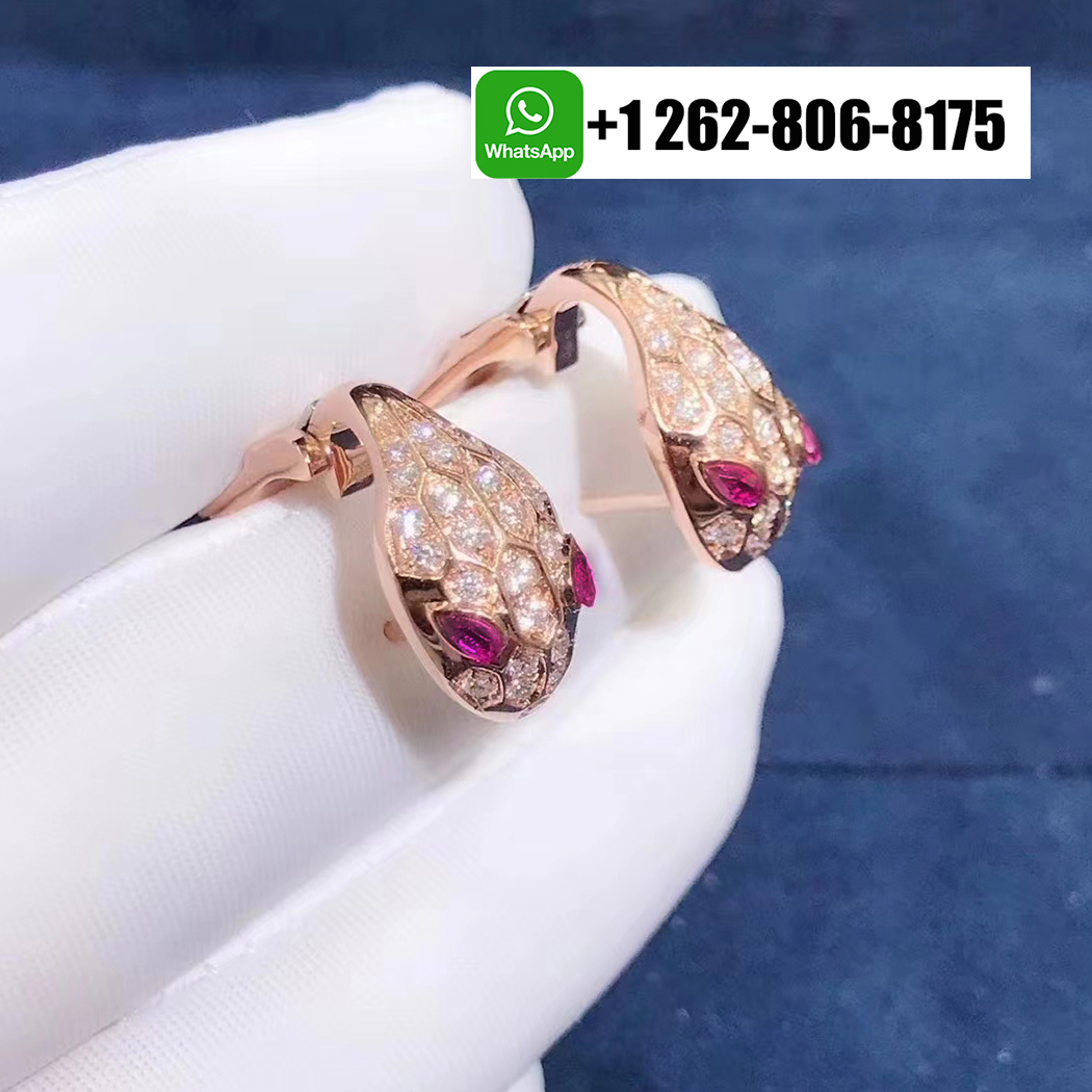 Bvlgari Serpenti Seduttori Earrings 18k Rose Gold with Rubellite Eyes