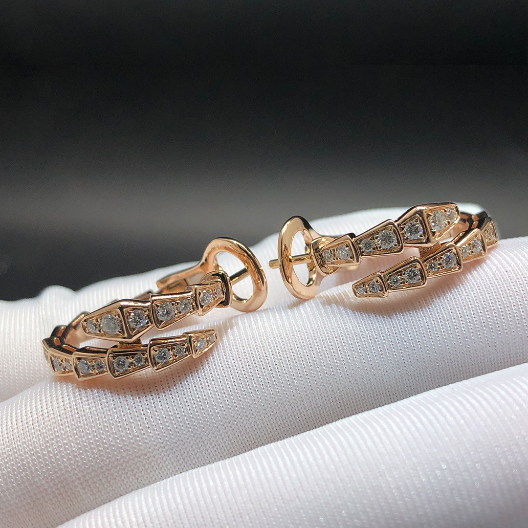 Bvlgari Serpenti Viper 18k Rose Gold Earrings with Full Pavé Diamonds 358361