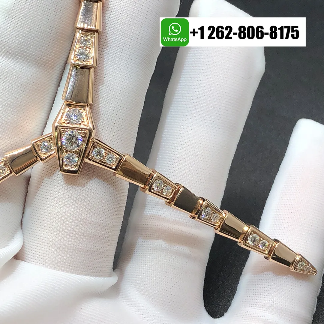 Bvlgari Serpenti Viper 18k Rose Gold Thin Necklace with Demi Pavé Diamonds 353037