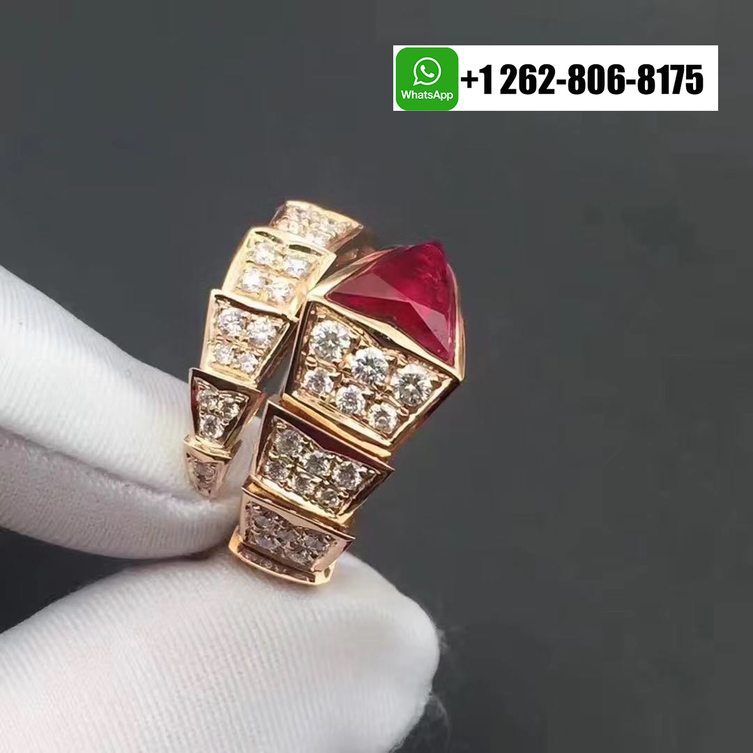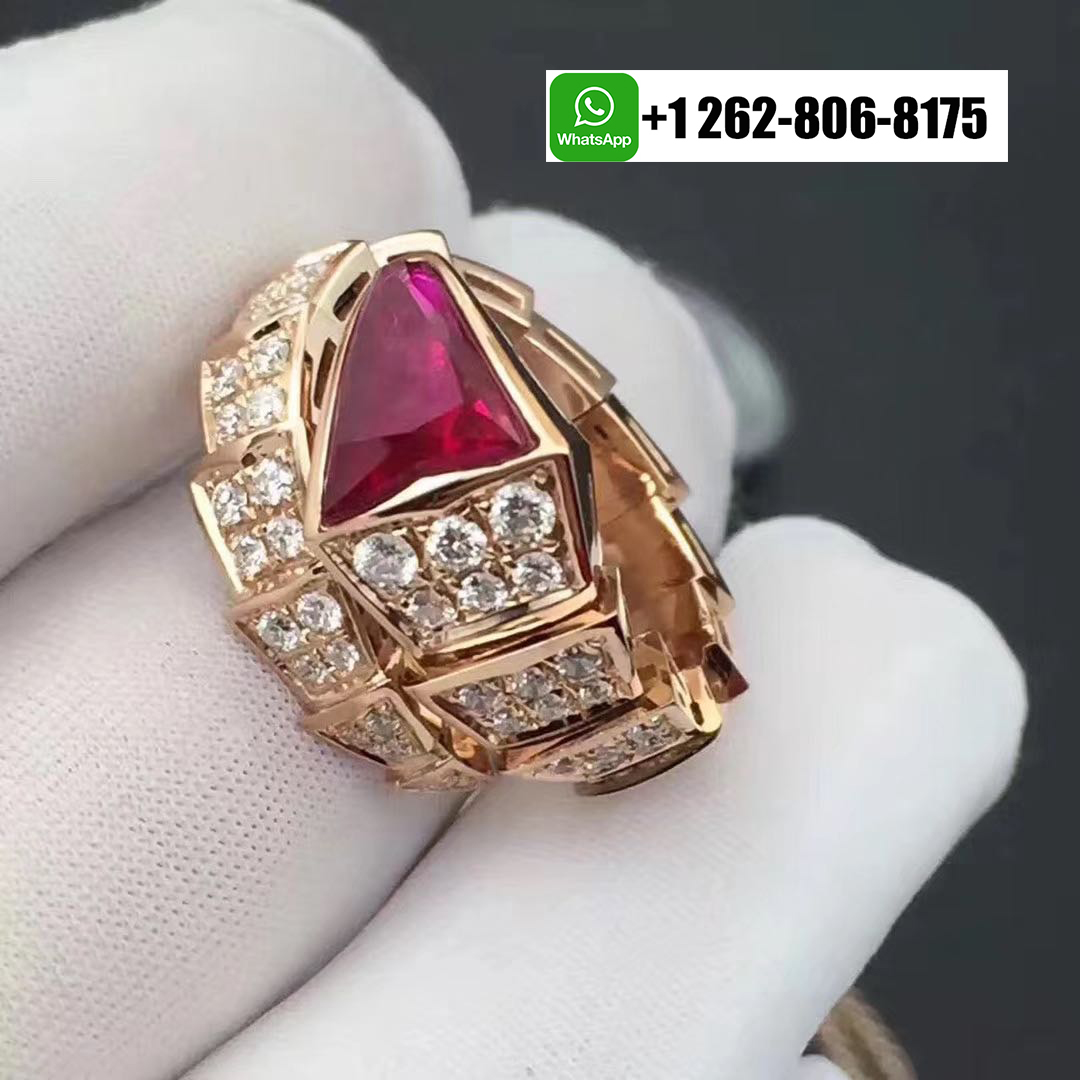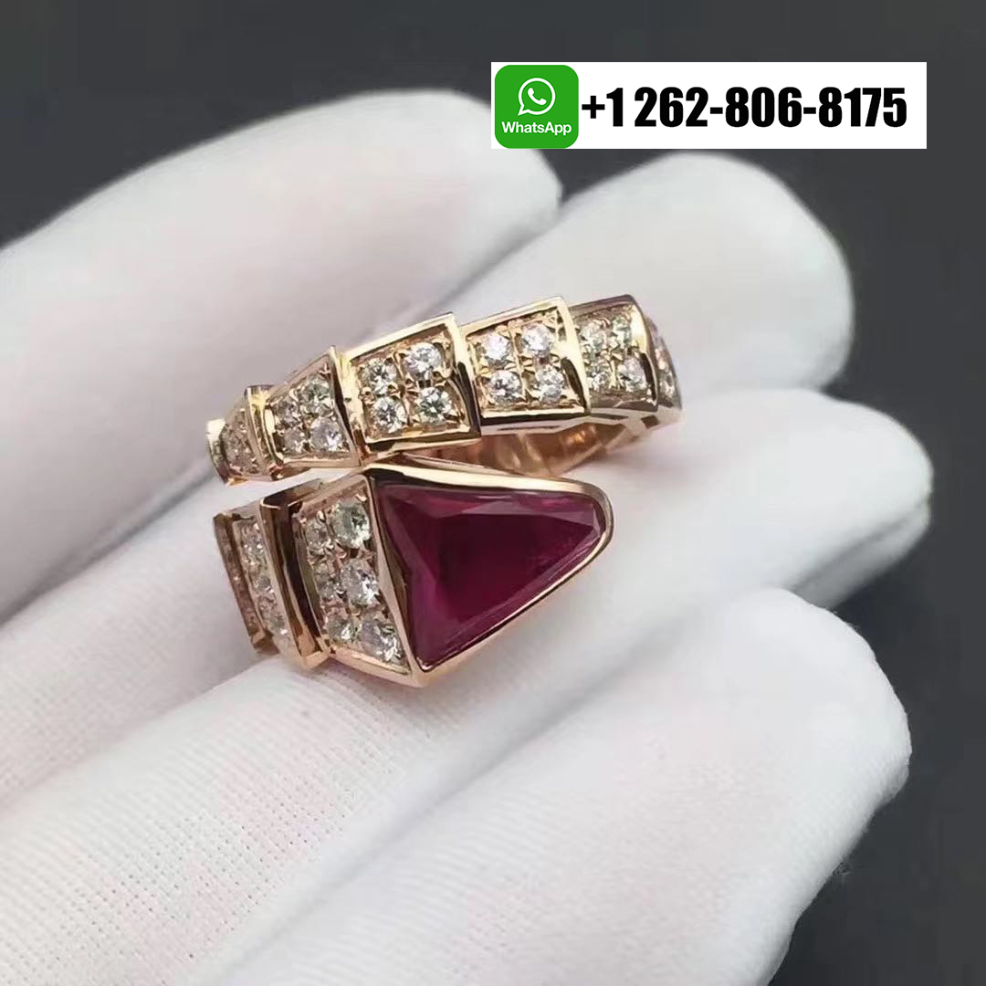 Bvlgari Serpenti Viper One-coli Pave Diamond Ring 18k Rose Gold with Rubellite