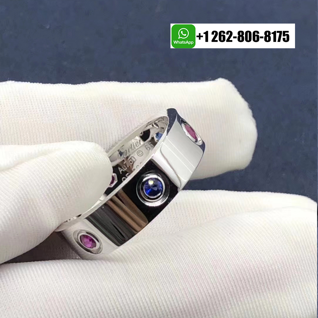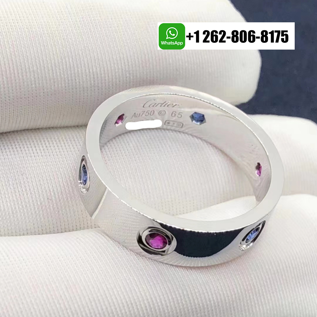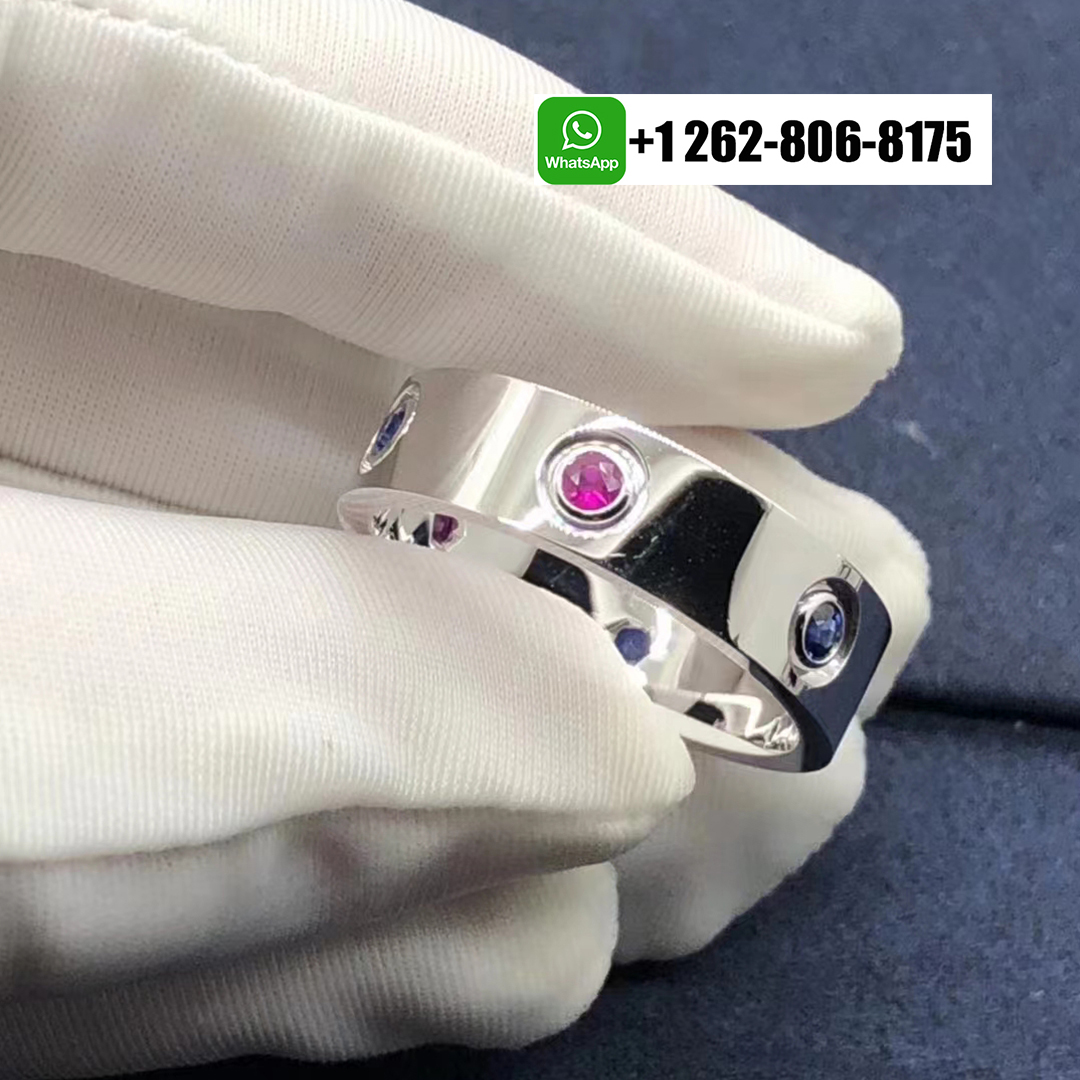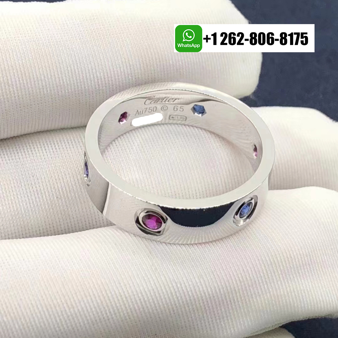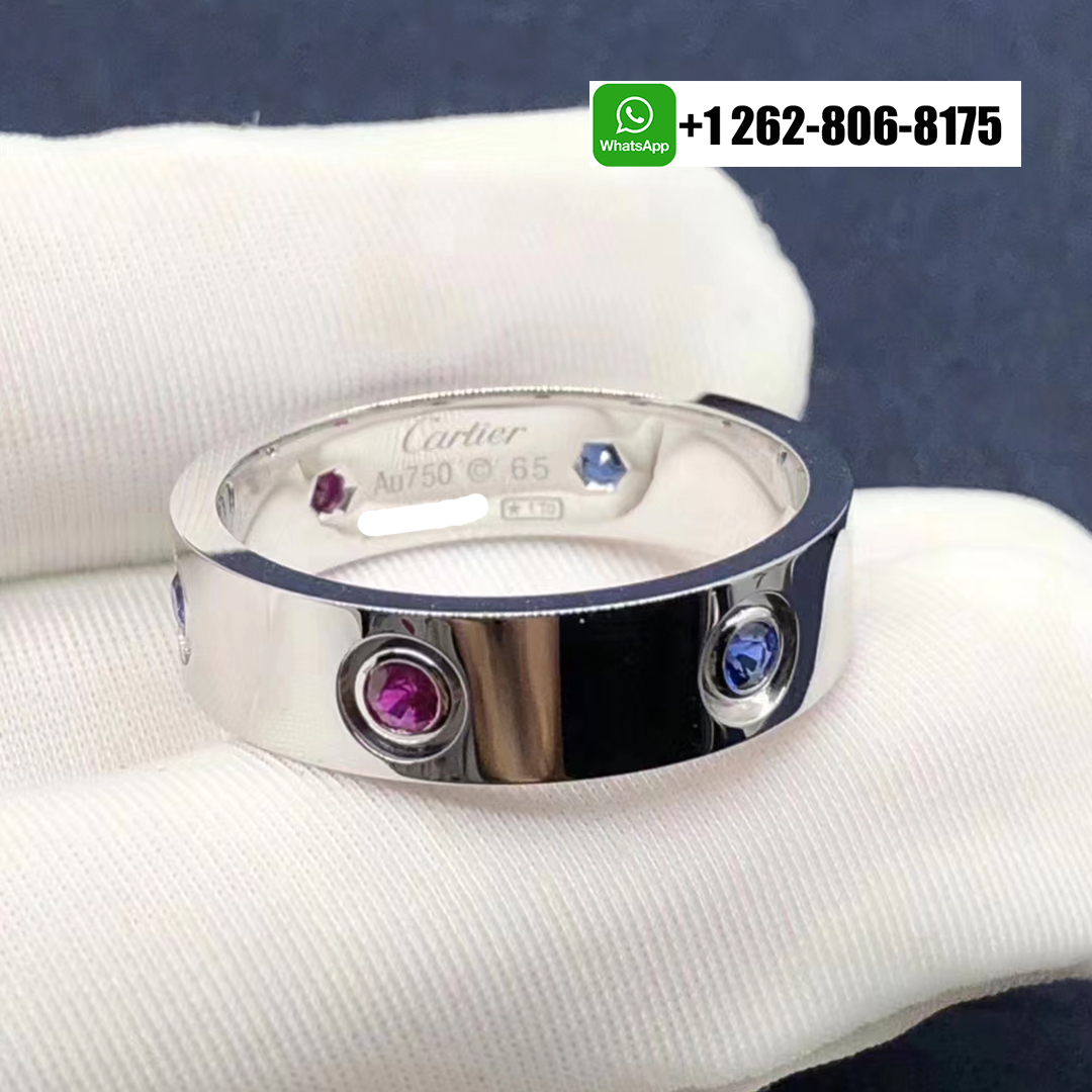 Cartier 18k White Gold 6 Multicolored Gemstone 5.5mm Love Ring