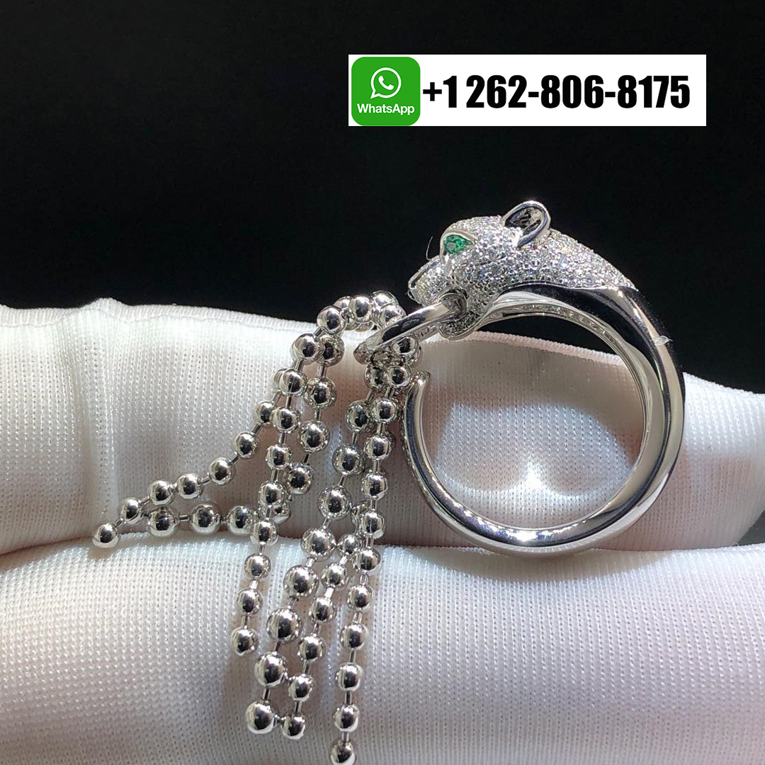 Home / Cartier Jewelry / Cartier 18K White Gold Diamond Black Onyx Emerald Panthere De Cartier Tassel Ring N4744100