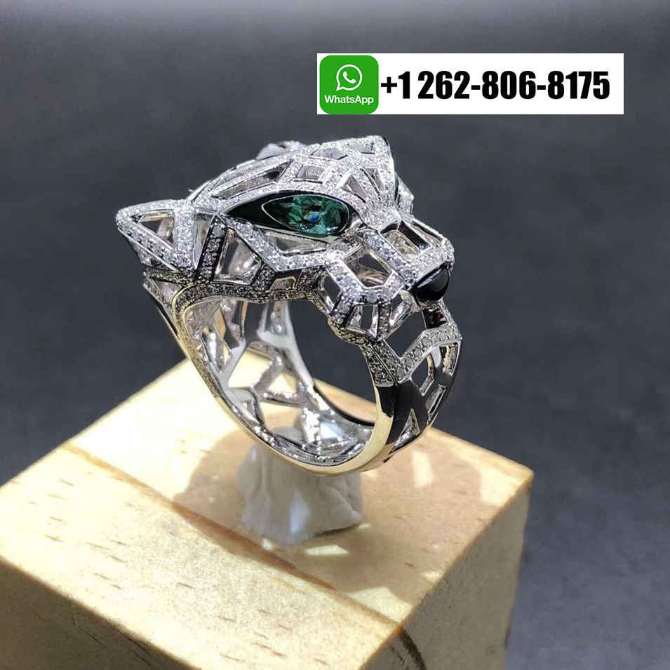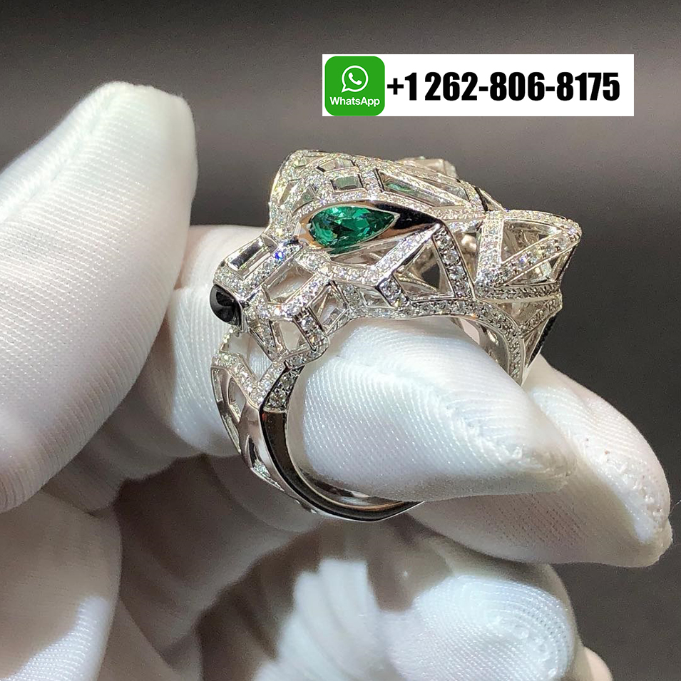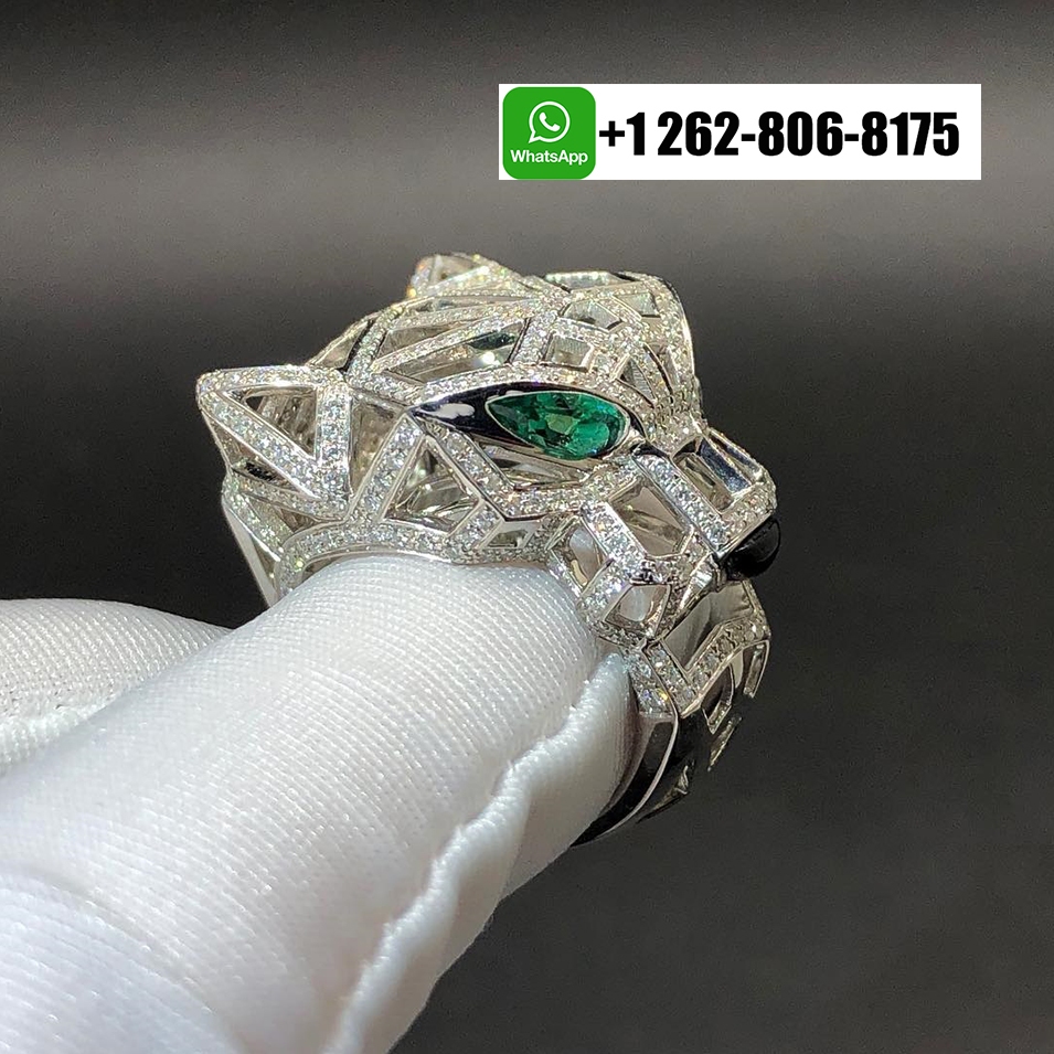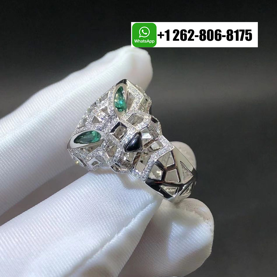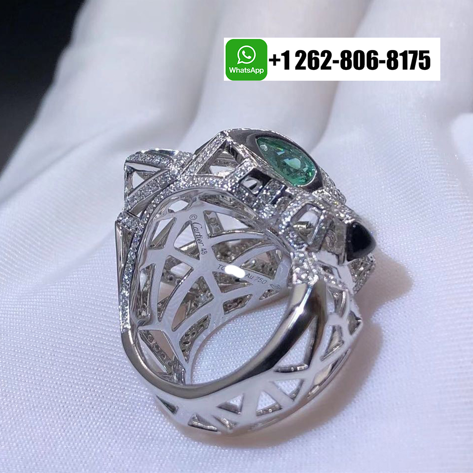 Home / Cartier Jewelry / Cartier 18k White Gold Diamond Emerald Onyx Panthère de Cartier Openwork Ring N4768000