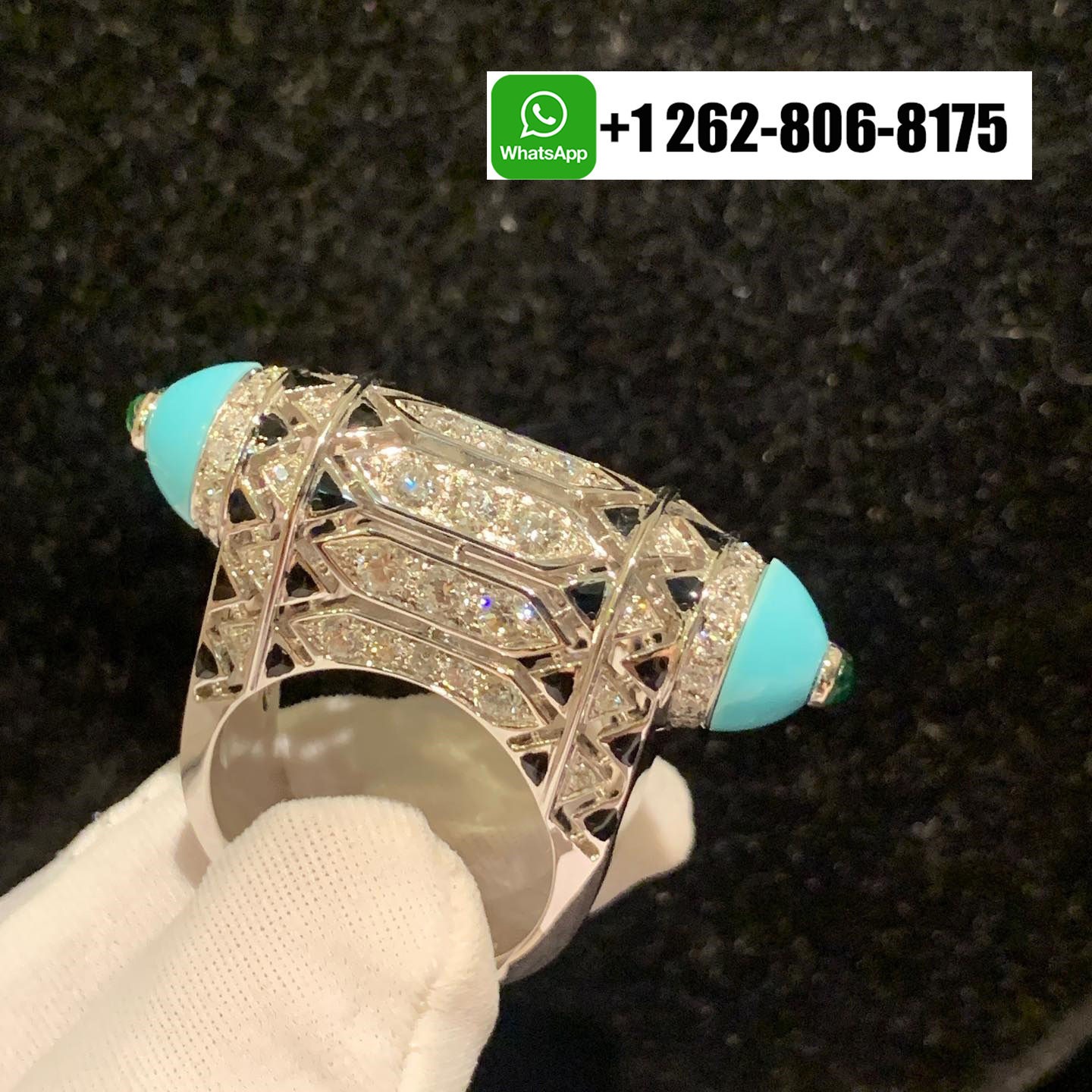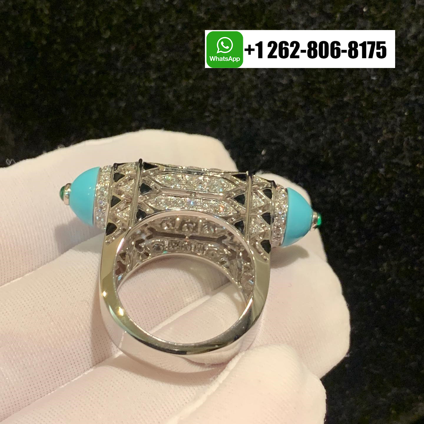 Cartier 18K White Gold Geometry Contrast Turquoise Emeralds Diamonds Art-Deco Inspired Ring H4350300