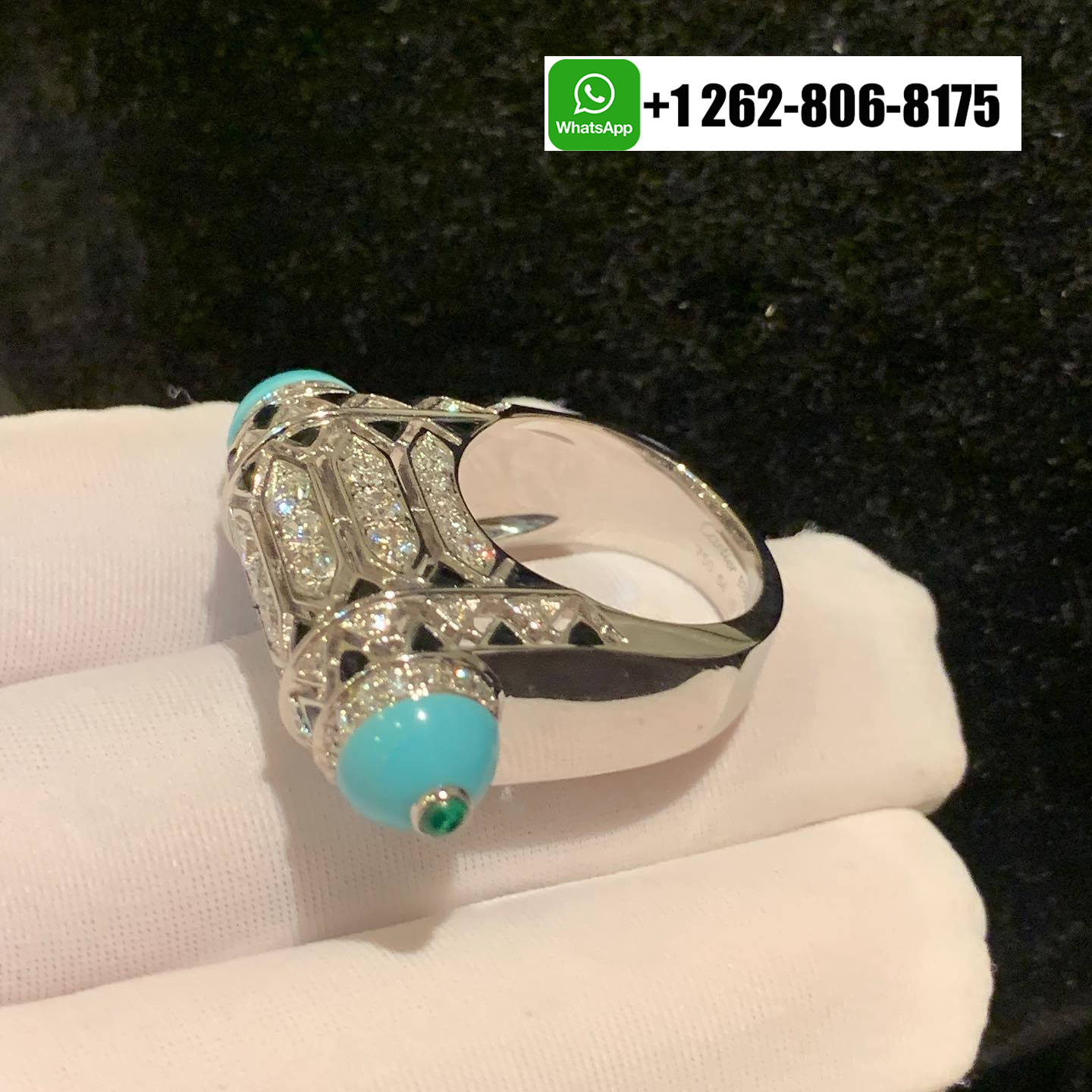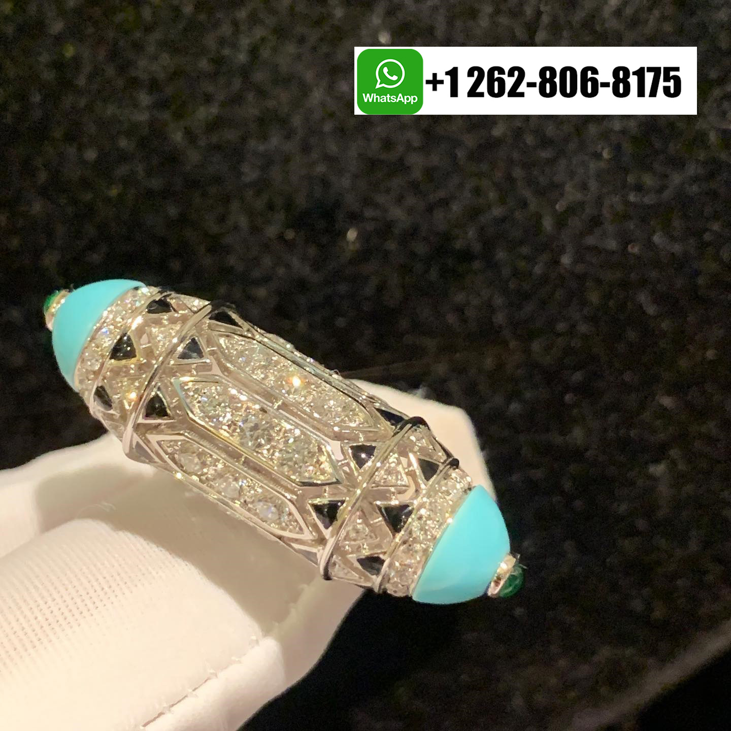 Home / Cartier Jewelry / Cartier 18K White Gold Geometry Contrast Turquoise Emeralds Diamonds Art-Deco Inspired Ring H4350300