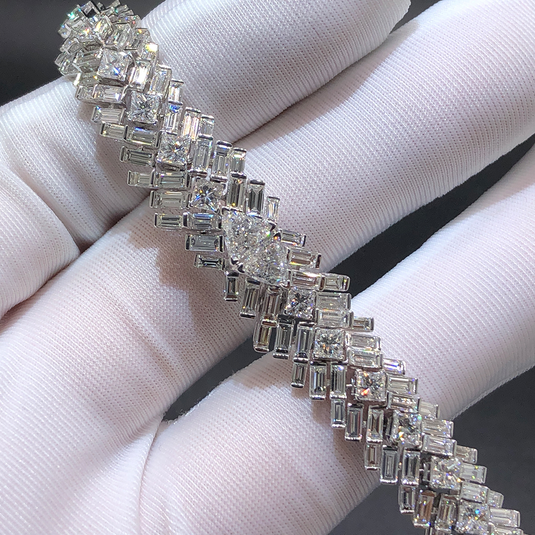 Diamonds: Totalling 19ct in size 17 ( 180 baguette-cut diamonds 13.60ct, 31 princess-cut diamonds 4.59ct, 2 troidia-cut diamonds 0.81ct)