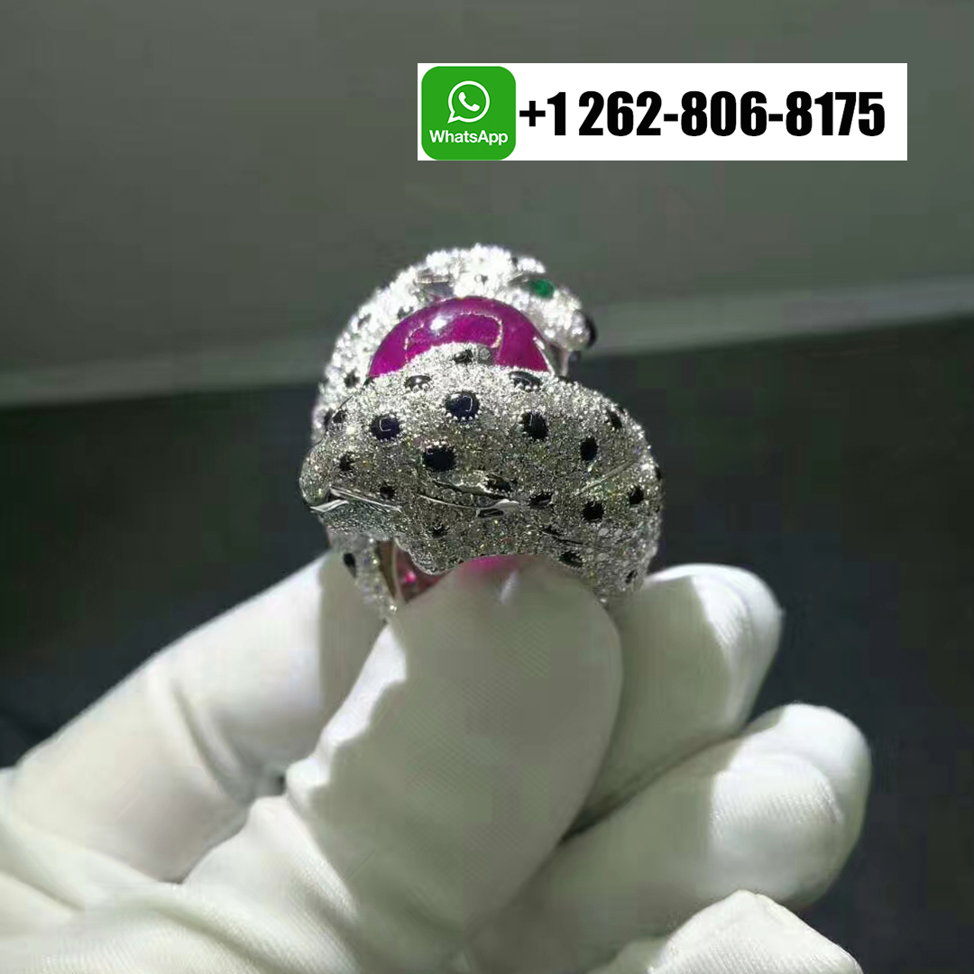Cartier 18k White Gold Ruby Emeralds Onyx Panthere de Cartier High Jewellery Ring