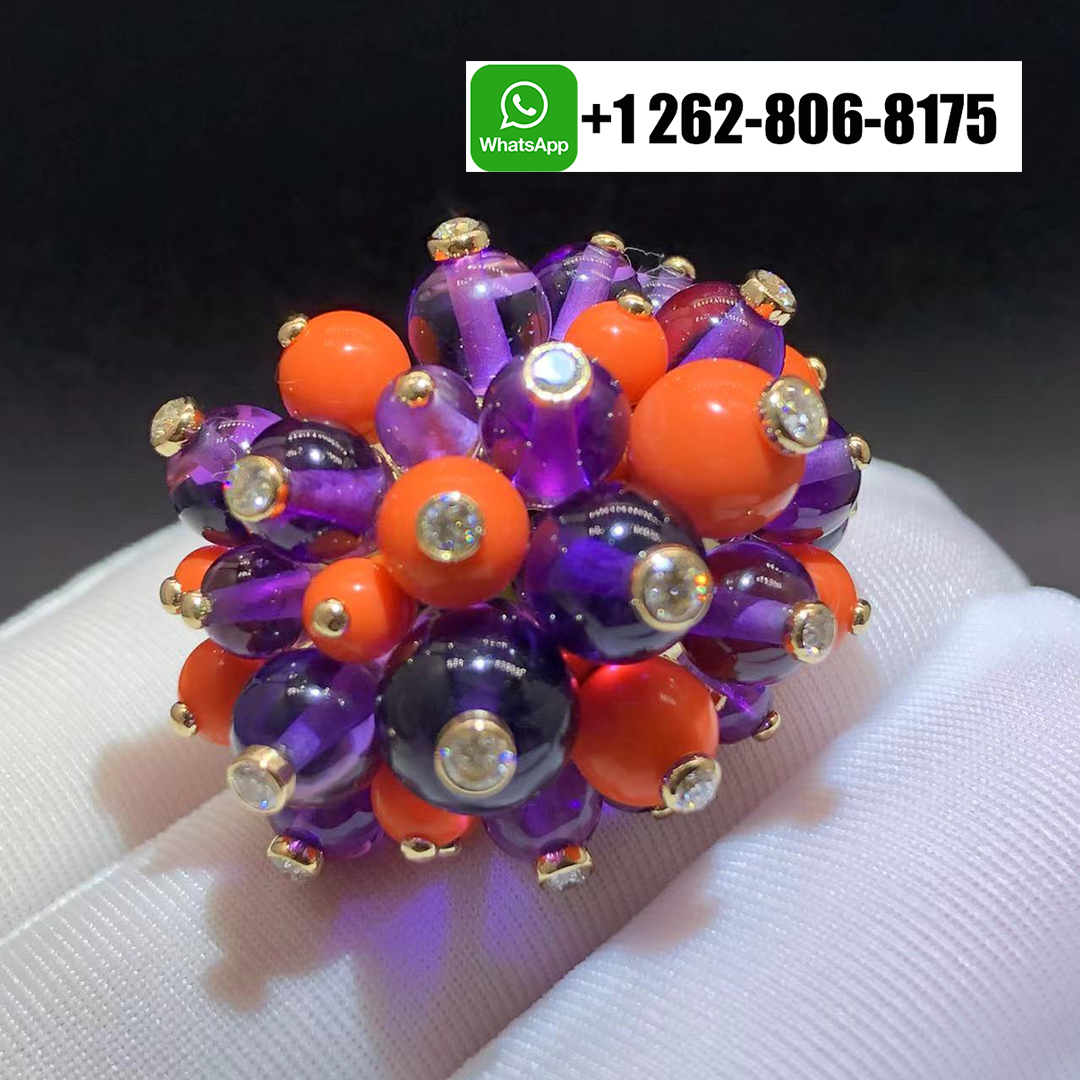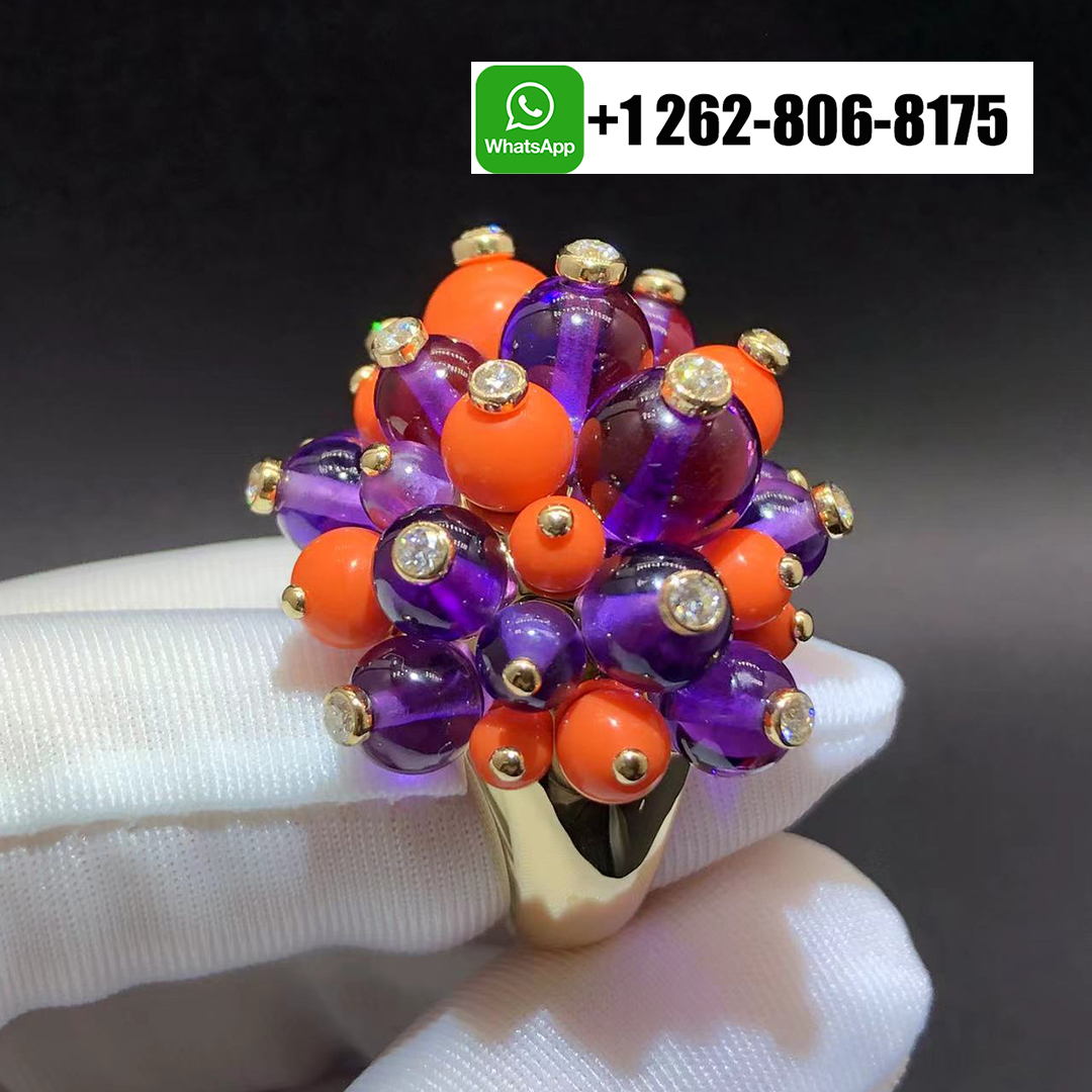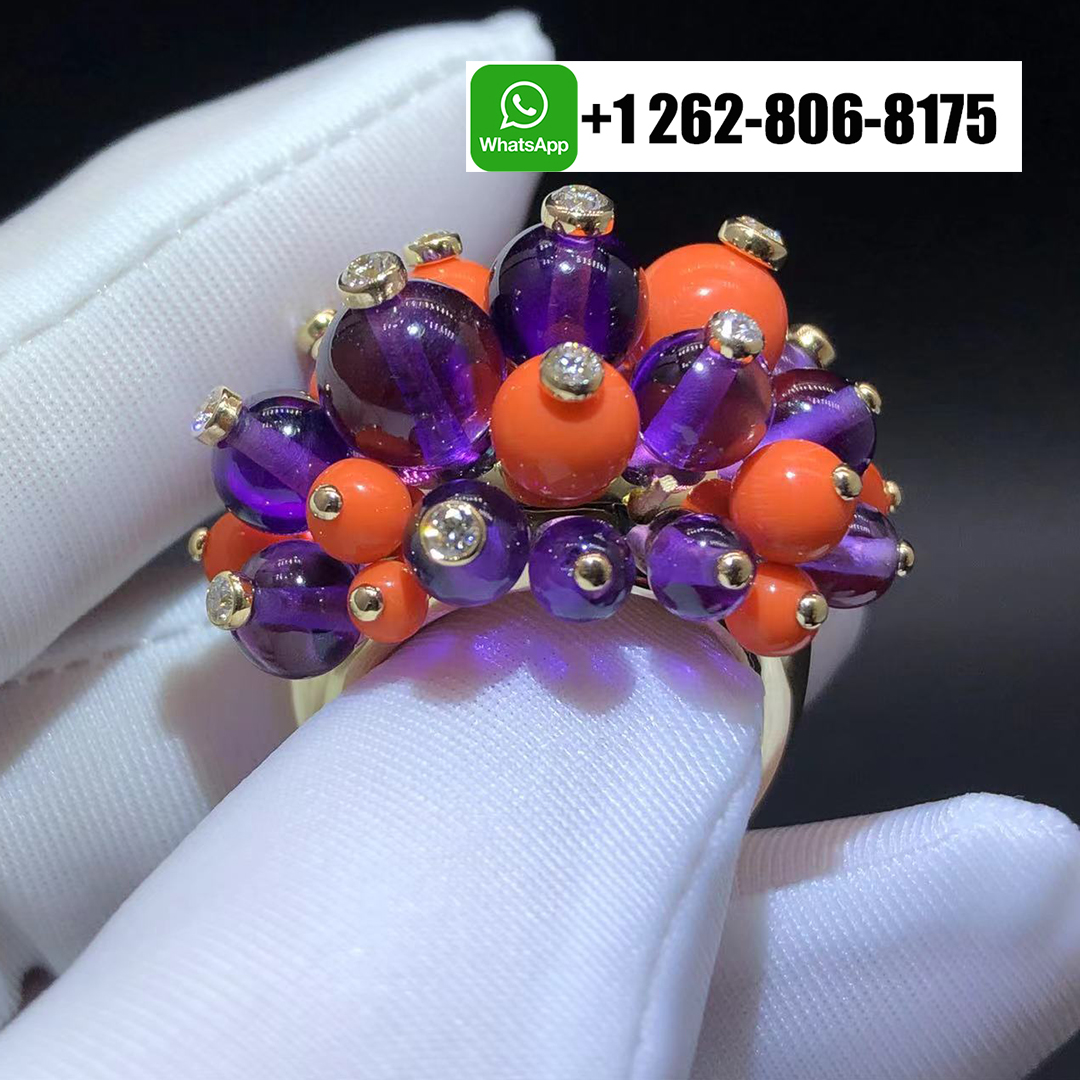 Home / Cartier Jewelry / Cartier 18k Yellow Gold Coral Ametyst Diamond Delices De Goa Ring