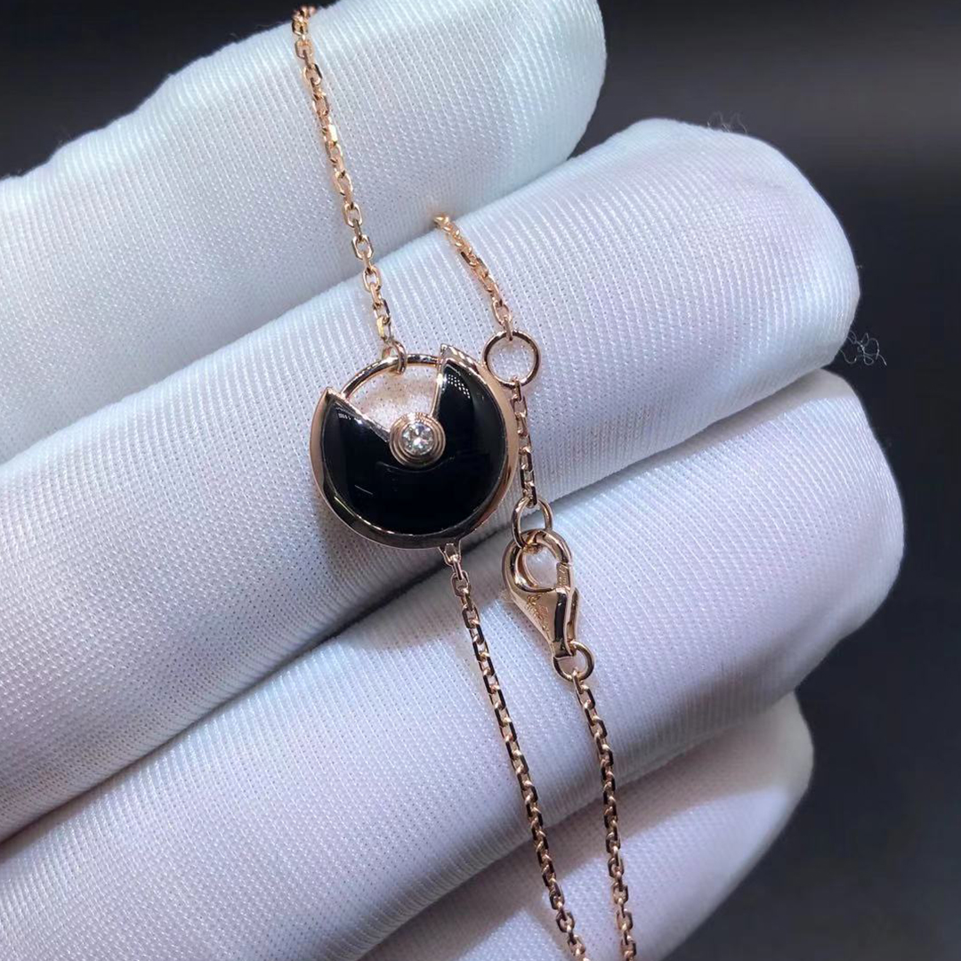 Cartier Amulette de Cartier XS Model 18k Rose Gold Onyx Diamond Bracelet B6044117