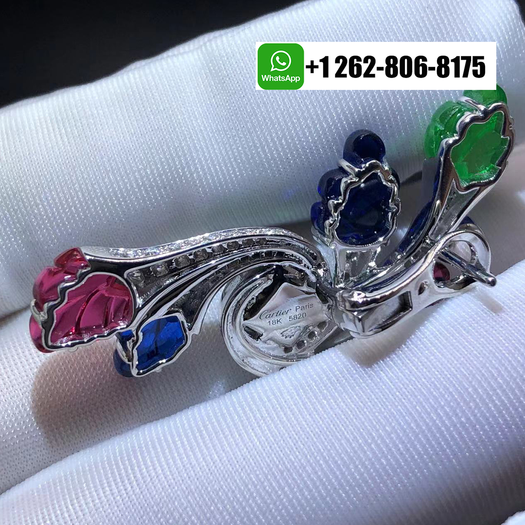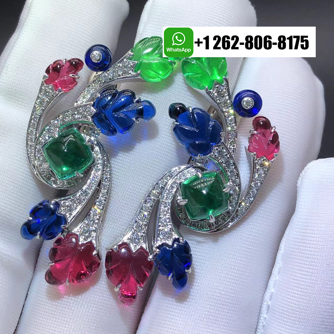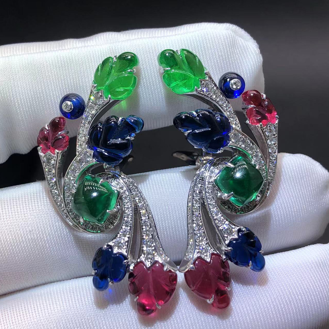 Home / Cartier Jewelry / Cartier Carved Sapphires, Emeralds,Rubies and Diamonds Tutti Furtti High Jewelry Earrings in Platinum