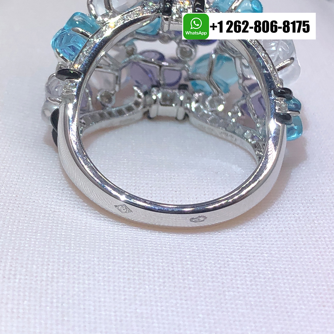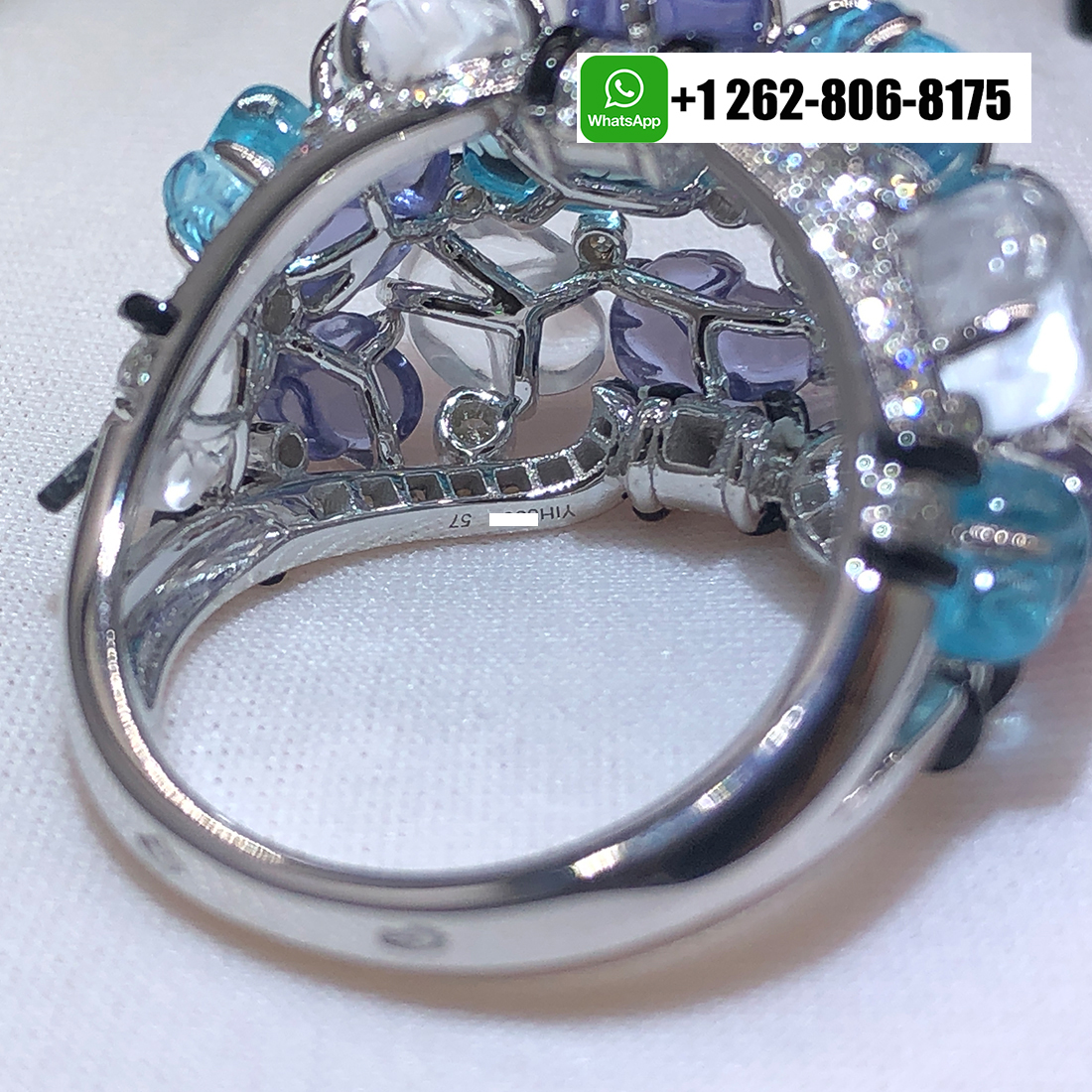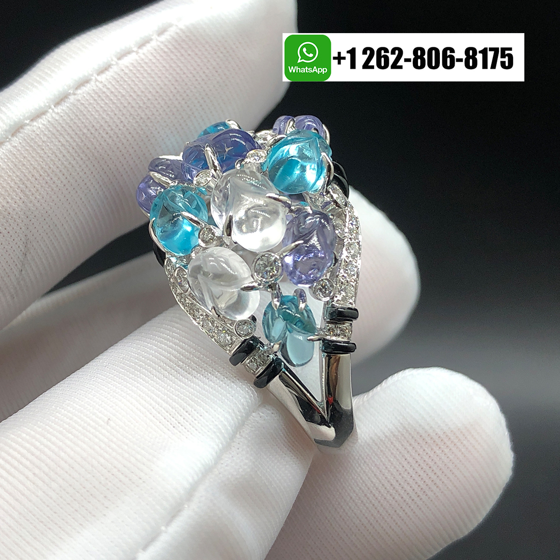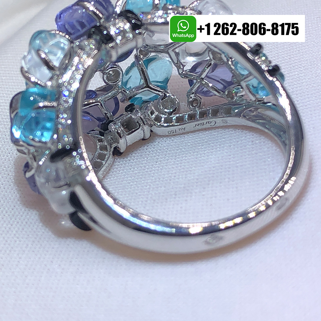 Home / Cartier Jewelry / Cartier Engraved Aquamarines Tanzanites Moonstones Onyx Diamonds 18K White Gold High Jewelry Ring H4326700