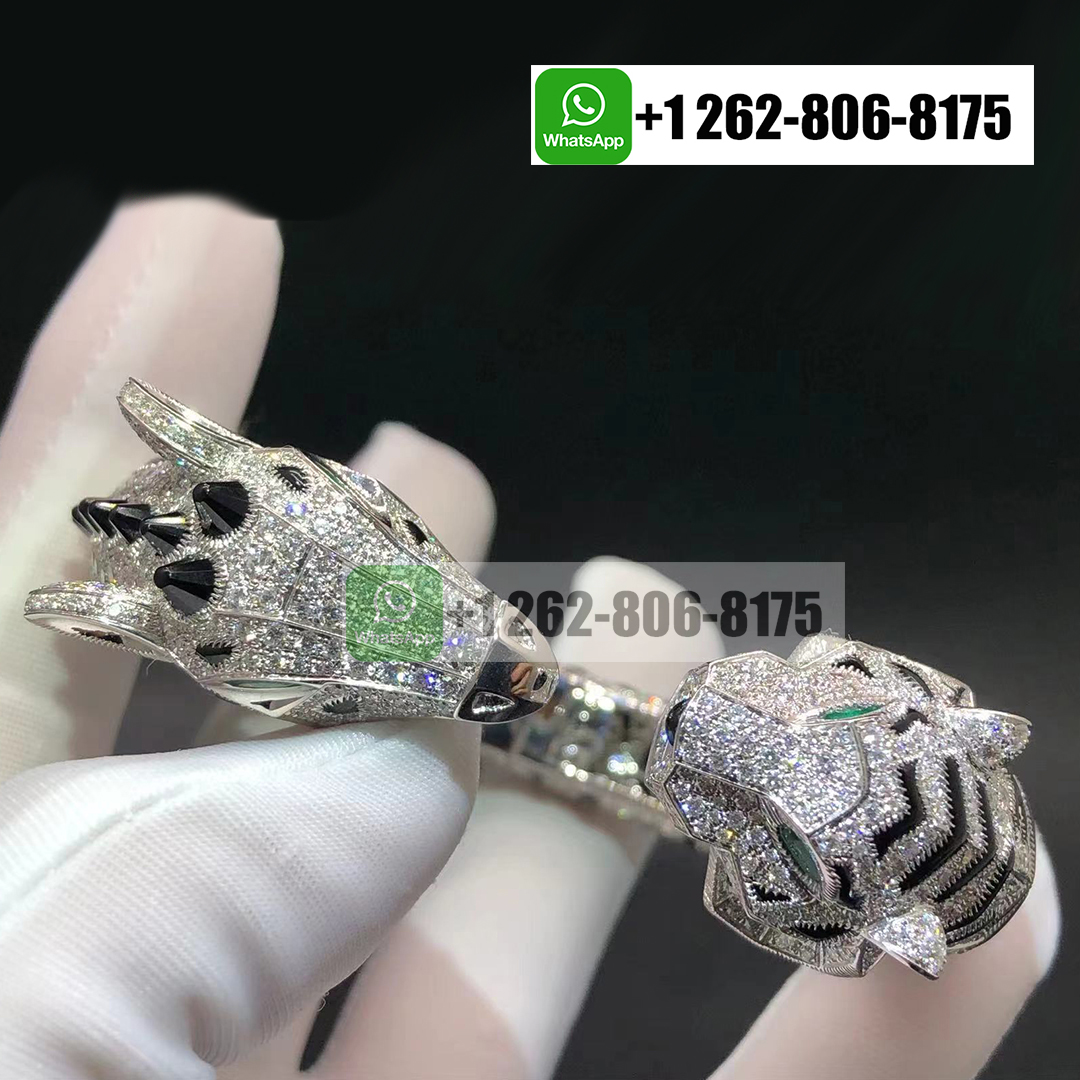 Home / Cartier Jewelry / Cartier Indomptables de Cartier Tiger and Giraffe 18k White Gold Pave Diamonds Onyx Bracelet H6038216