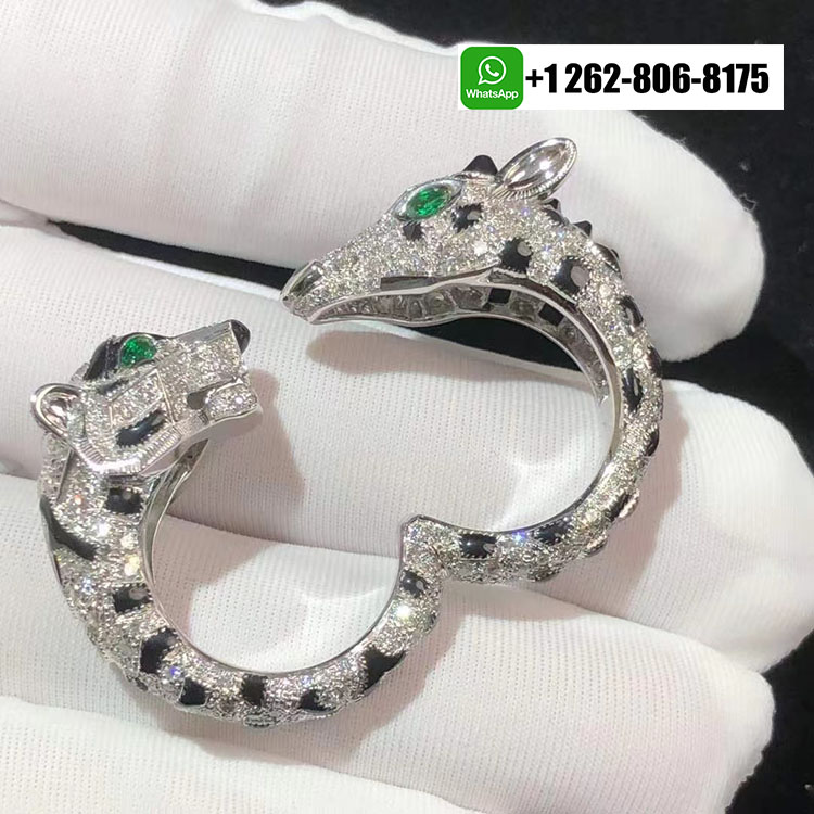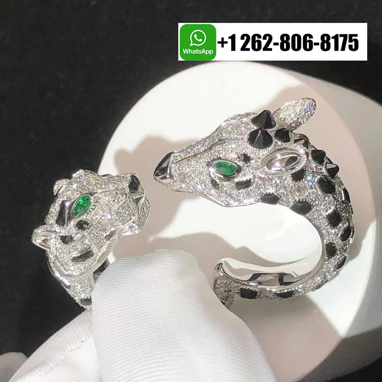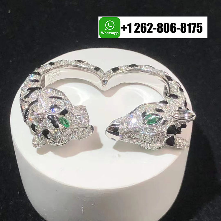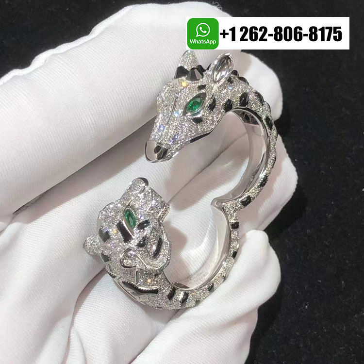 Home / Cartier Jewelry / Cartier Indomptables de Cartier Tiger and Giraffe 18k White Gold Pave Diamonds Two-finger Ring H4393300
