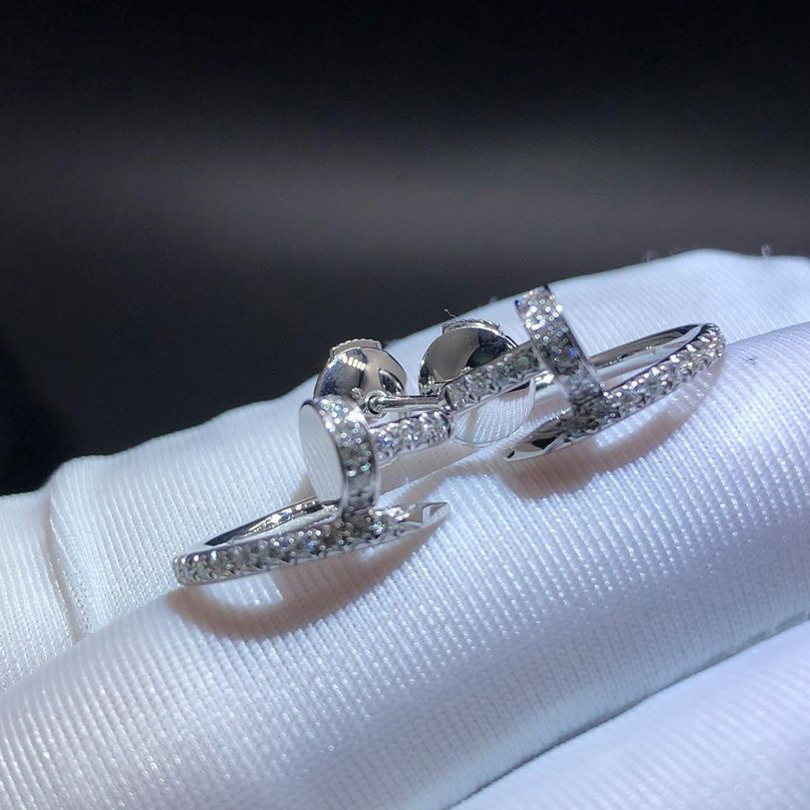 Cartier Juste un Clou Pave Diamond Small Model Hoop Earrings 18k White Gold B8301431