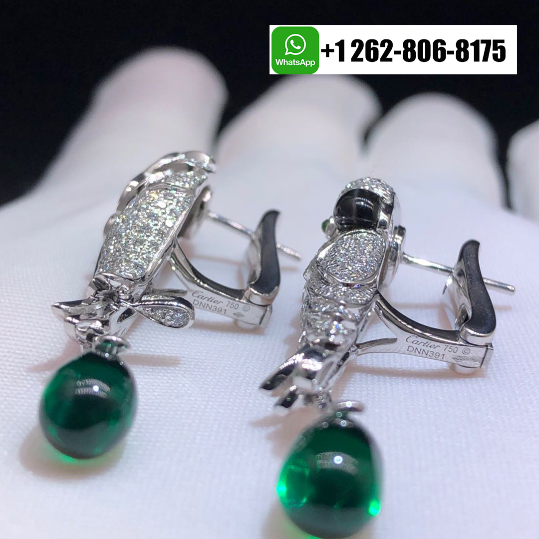 Cartier Les Oiseau Liberes Diamond Emeralds Parrot High Jewelry Earrings in 18k White Gold