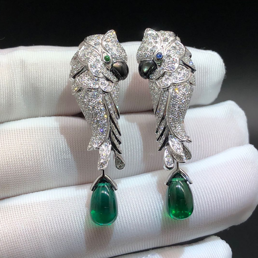 100% exactly same as authentic Cartier Les Oiseaux Libérés Parrot Earrings, natural gems. What you see is absolutely what you get! We guarantee everything we sell.