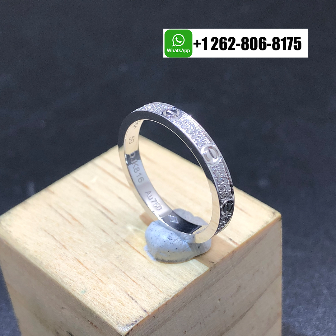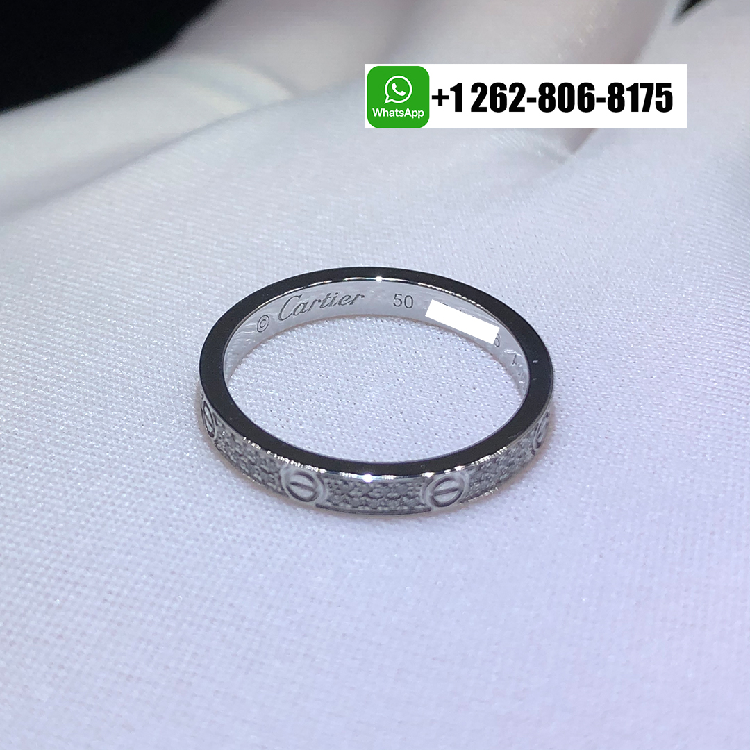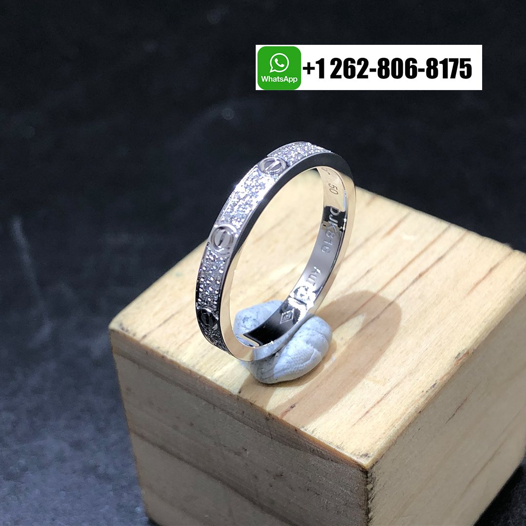 Cartier Love 18k White Gold Pave Diamonds 2.6MM Band Small Model Ring B4218200