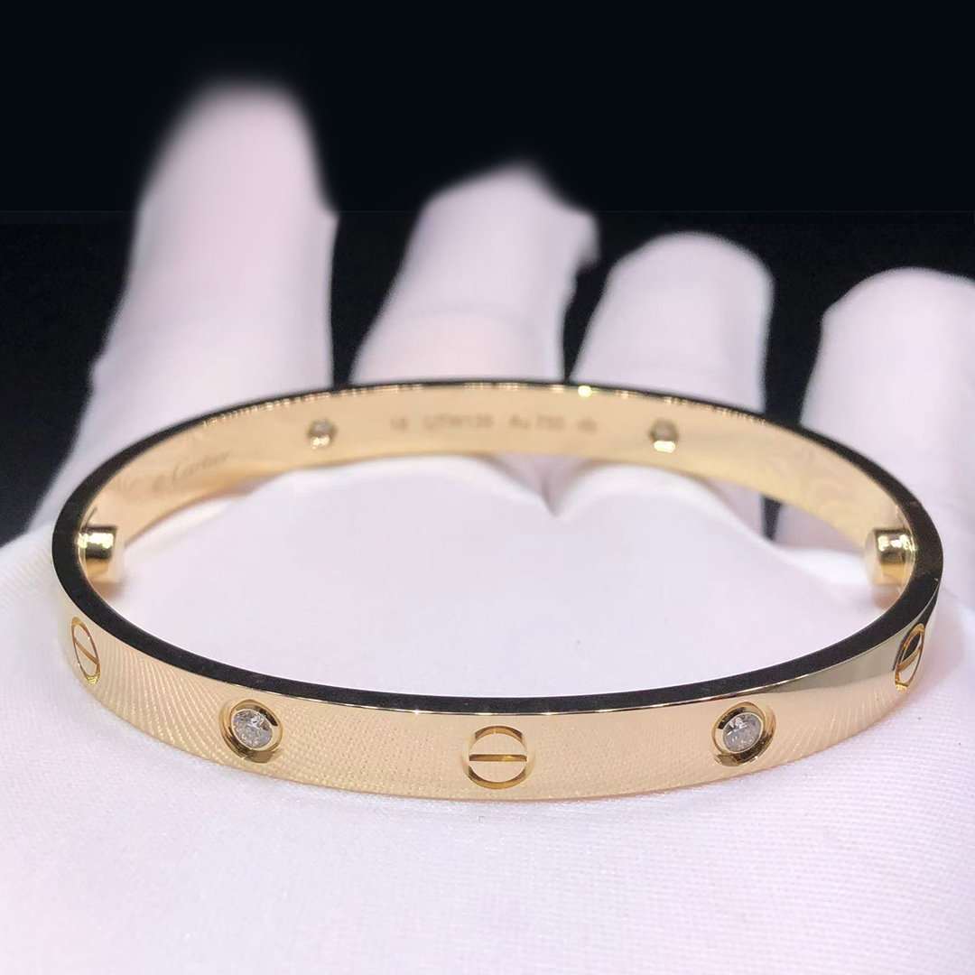 Looking for 100% exactly same quality as authentic Customized Replica Cartier 4 Diamonds Love Bracelet ? Look no further than Lexga. We are committed to delivering high-quality and reliable products, meticulously selecting each diamond and crafting material to ensure durability and excellence in every piece.