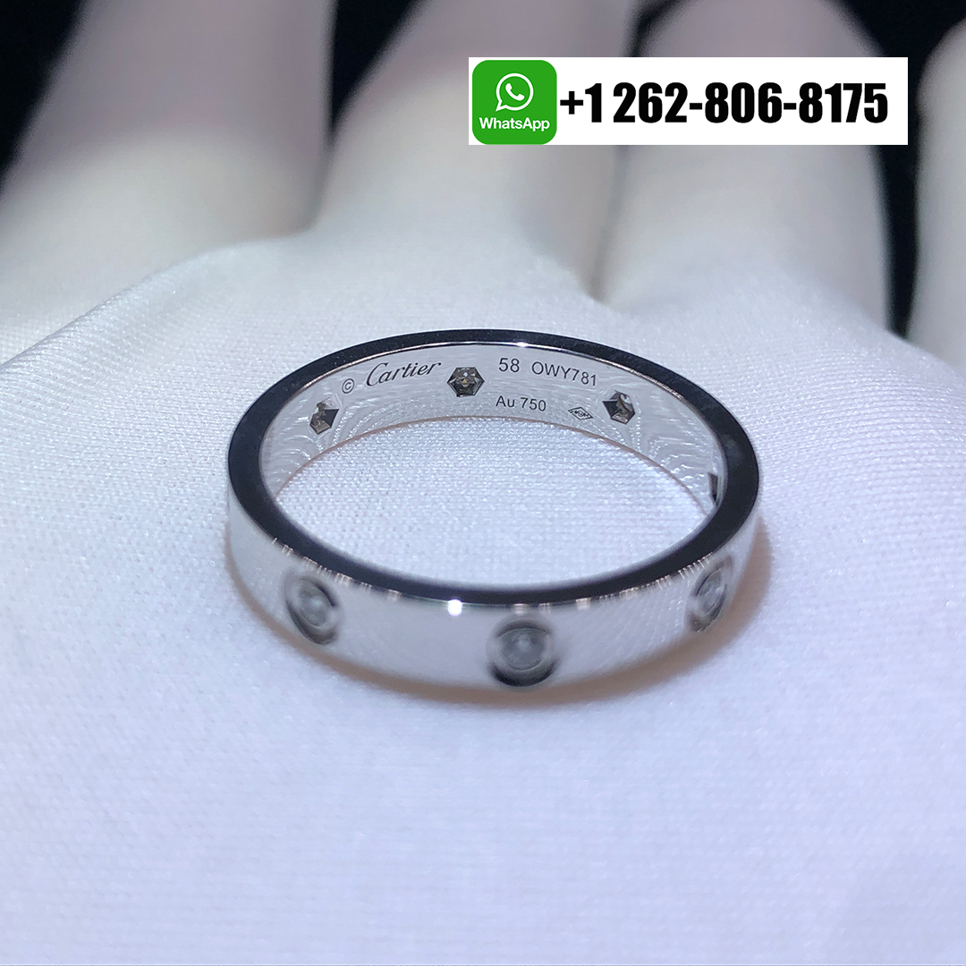 The Cartier Love ring is a luxurious embodiment of elegance. This Cartier Love 8 Diamonds Solid 18K White Gold 4mm Wedding Band Ring crafted in gleaming 18k white gold, this iconic piece features a sleek design adorned with eight exquisite diamonds, adding a touch of brilliance. Its timeless appeal and symbolic undertones make it a captivating expression of enduring love and style.