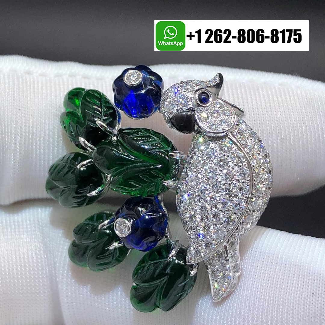 Home / Cartier Jewelry / Cartier Oiseaux Liberes 18k White Gold Pave Diamond Carved Sapphires Emeralds Parrot Earrings
