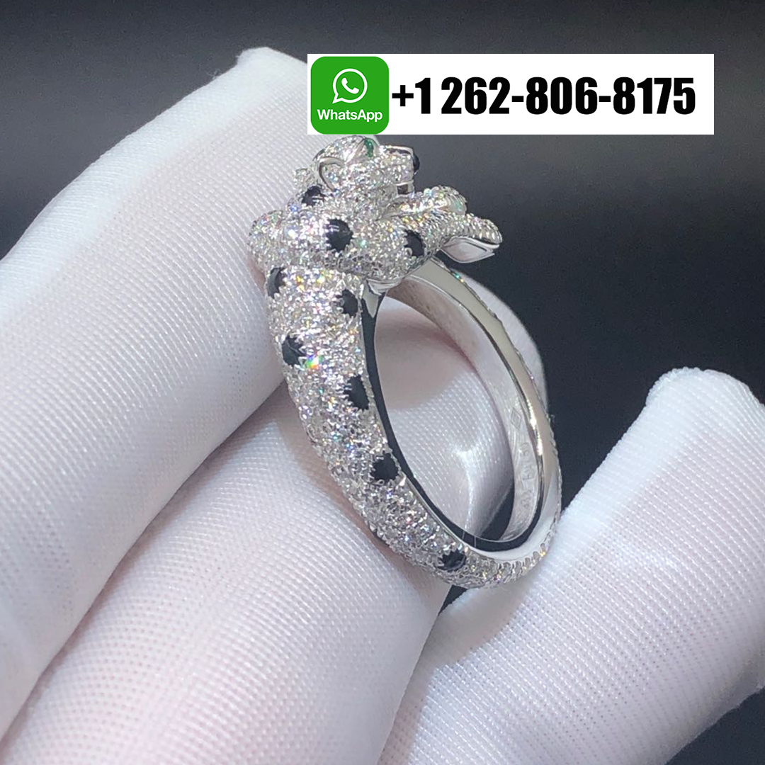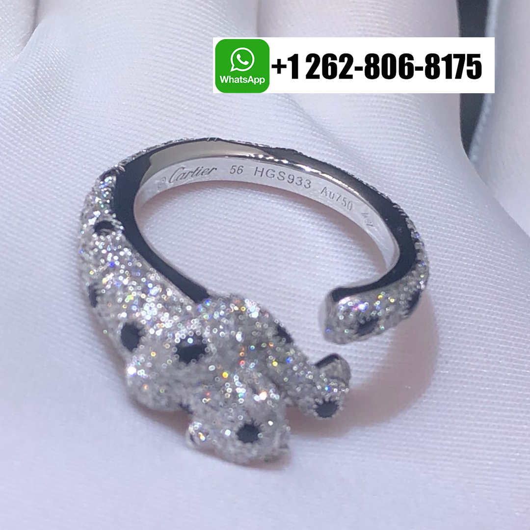 Cartier Panthere 18k White Gold Diamond Paved Onyx Panthere de Cartier Ring N4748900