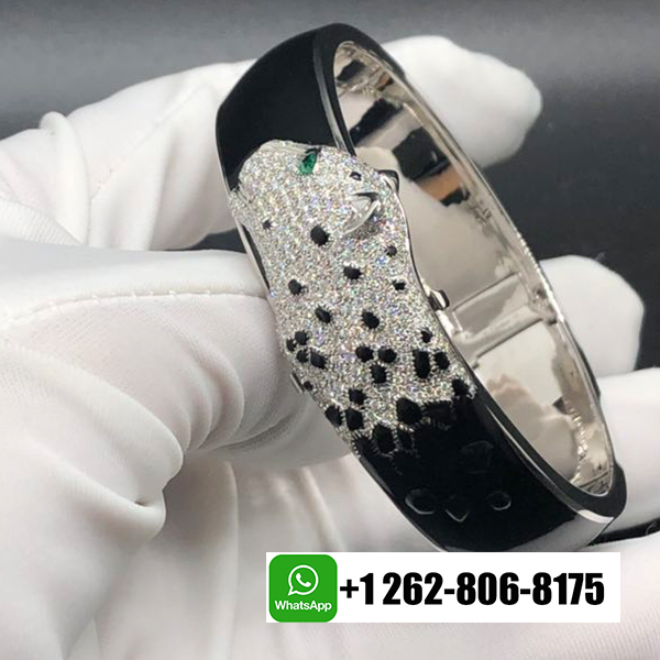Home / Cartier Jewelry / Cartier Panthere de Cartier 18k White Gold Pave Diamond Black Enamel High Jewelry Bracelet