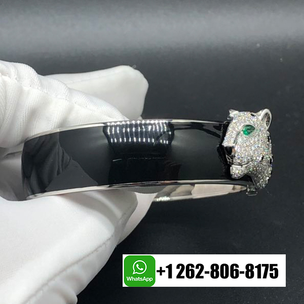 Cartier Panthere de Cartier 18k White Gold Pave Diamond Black Enamel High Jewelry Bracelet