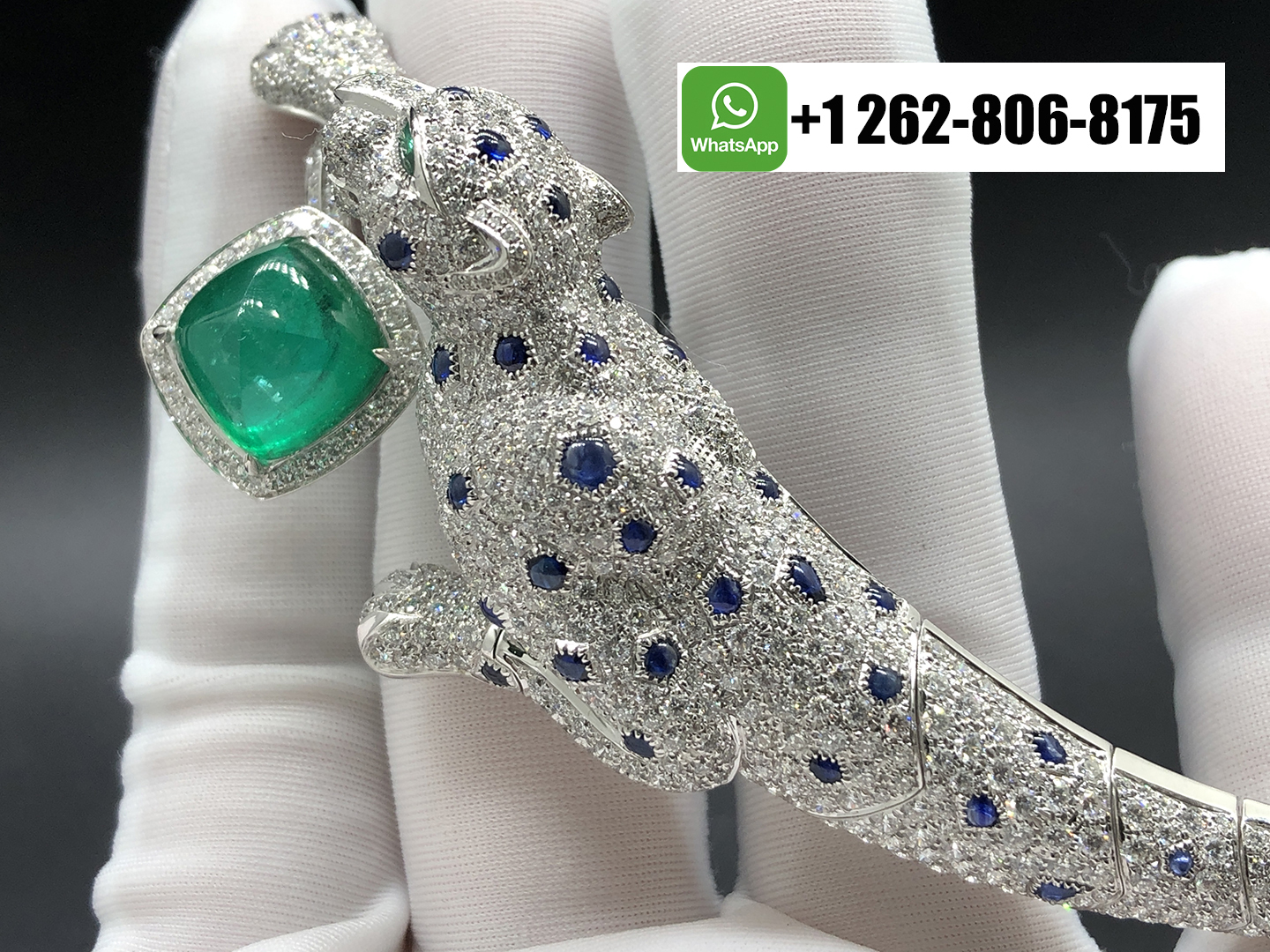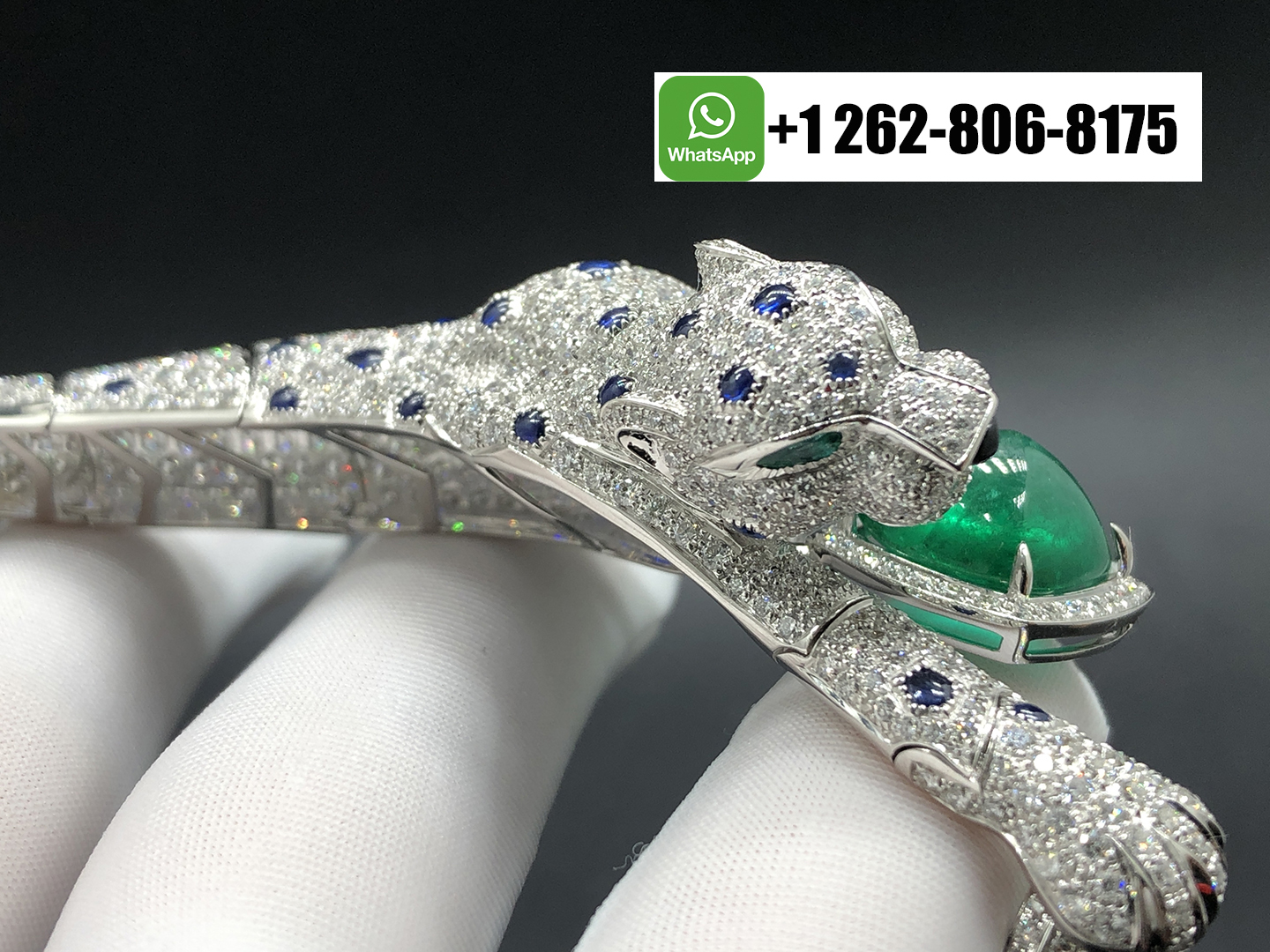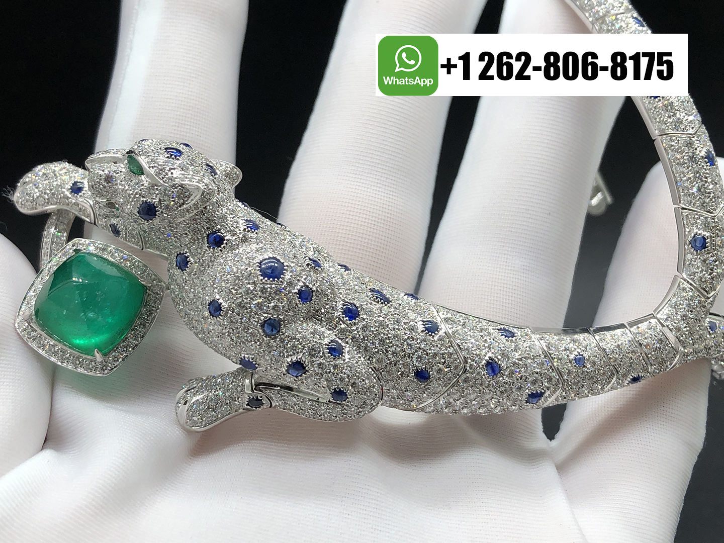 Home / Cartier Jewelry / Cartier Panthère Jaillissante Blue Sapphires Emerald High Jewelry 18k White Gold Full Pave Diamond Ring-Bracelet