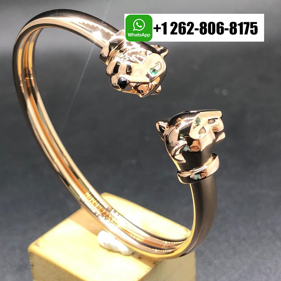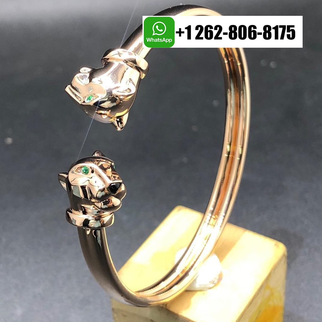 Home / Cartier Jewelry / Cartier Pure 18K Rose Gold Panthere de Cartier Tsavorite Onyx Open Cuff Bracelet N6711617