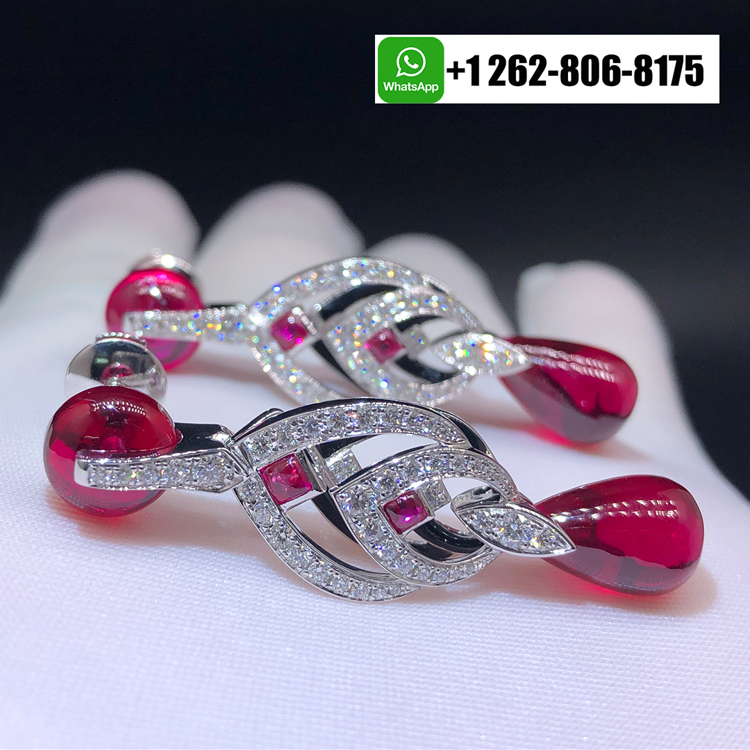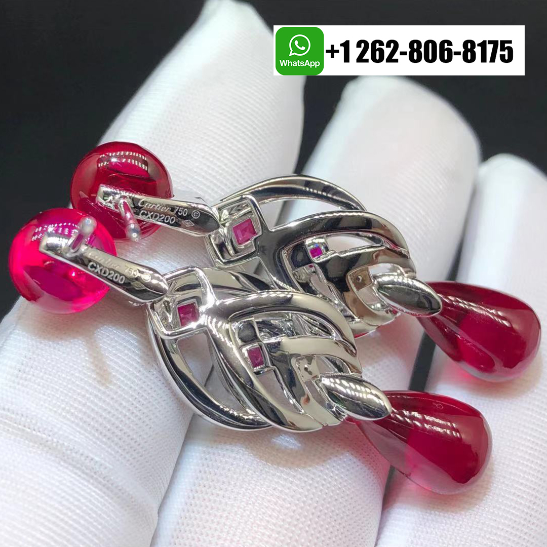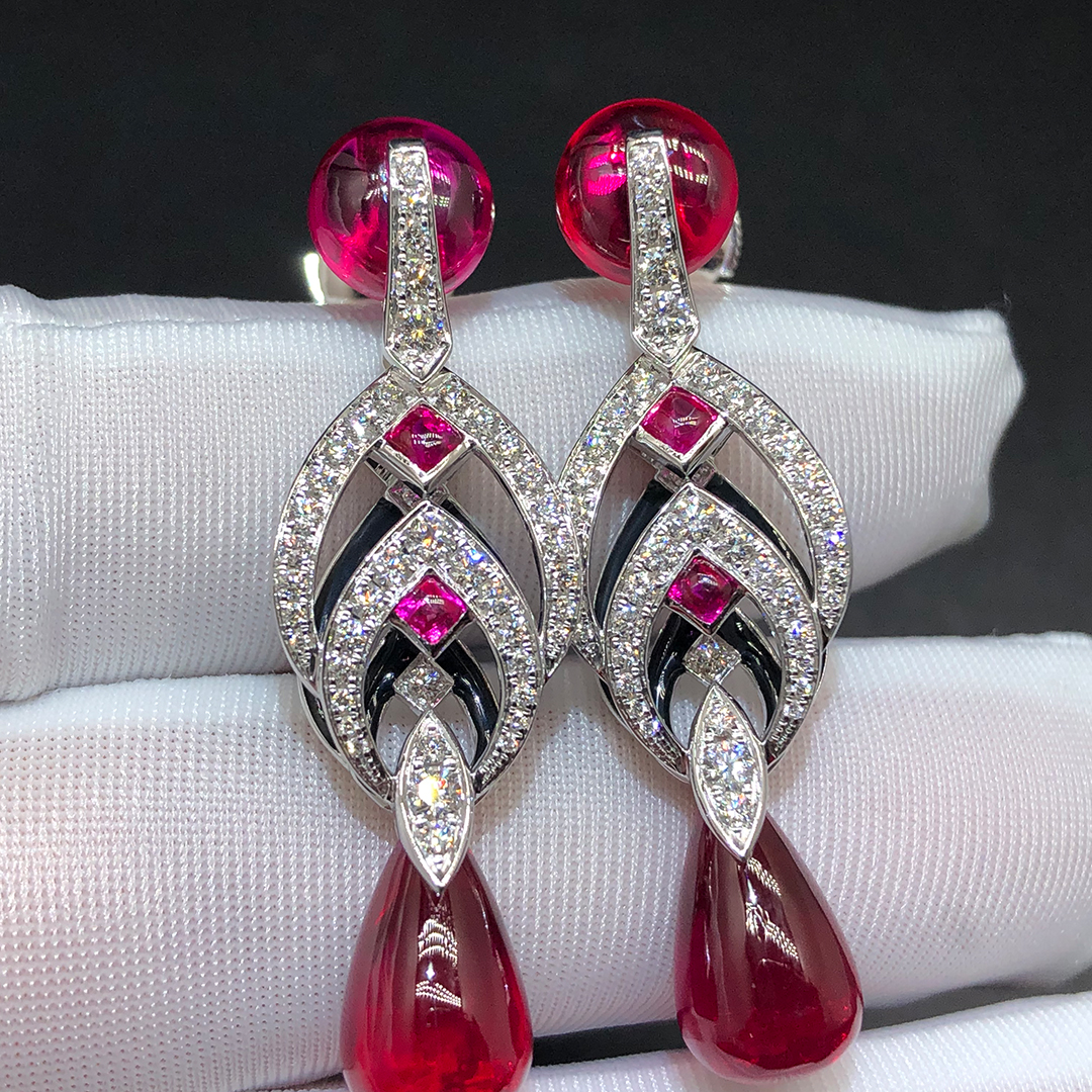 Home / Cartier Jewelry / Cartier Rubellite Black Lacquer Pave Diamond 18k White Gold High Jewelry Drop Earrings H8000282