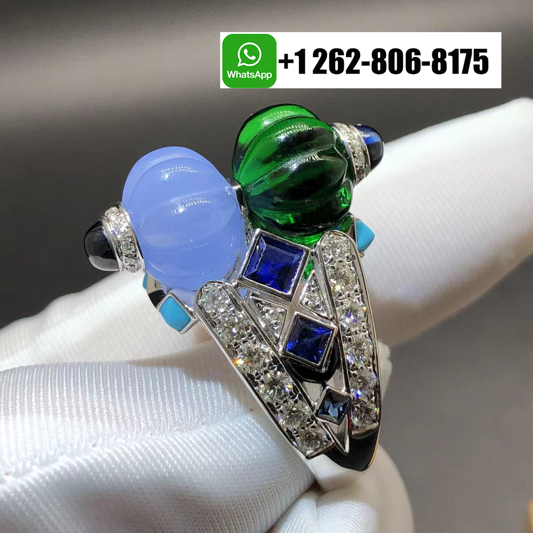 Cartier Sixieme Sens Par Cartier Emerald Chalcedony Diamonds 18k White Gold Creative Collection High Jewelry Ring H4386600