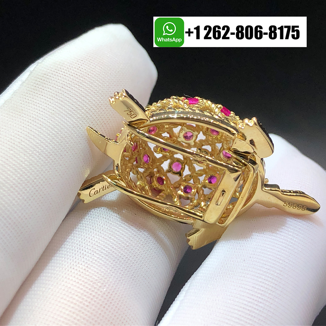 Cartier Turtle Brooch in 18K Yellow Gold Set With Rubies
