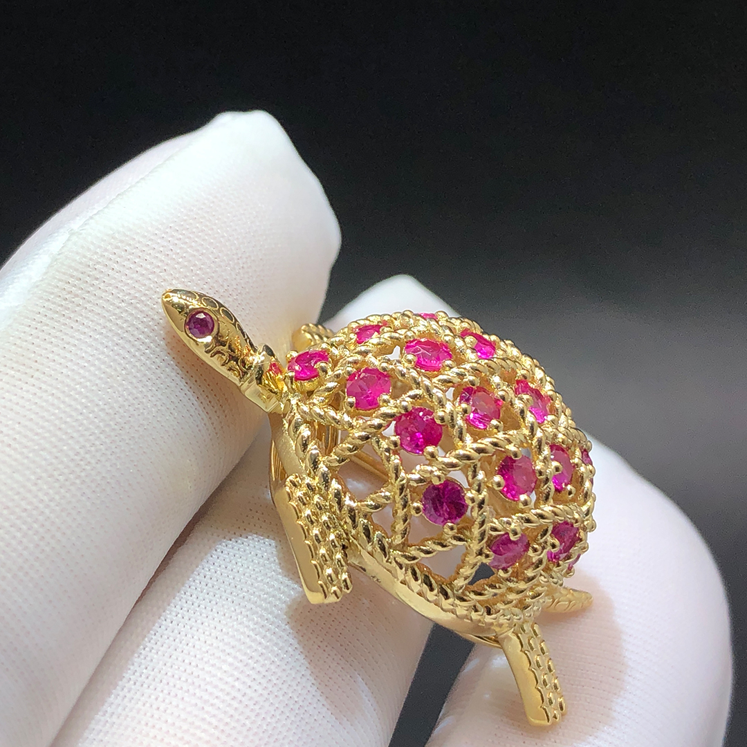 Home / Cartier Jewelry / Cartier Turtle Brooch in 18K Yellow Gold Set With Rubies