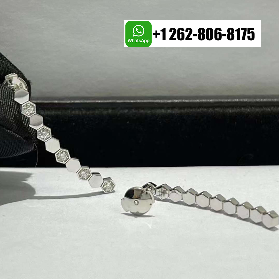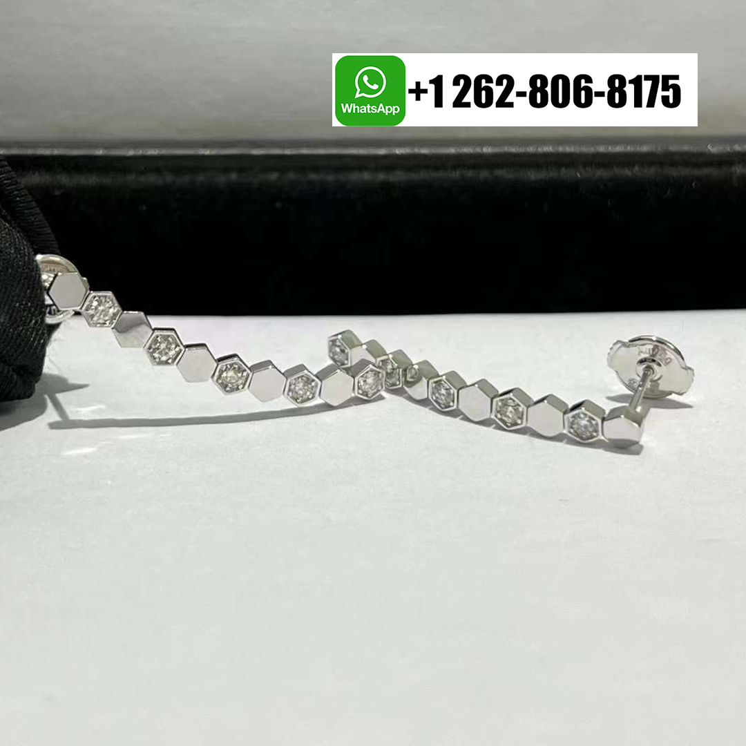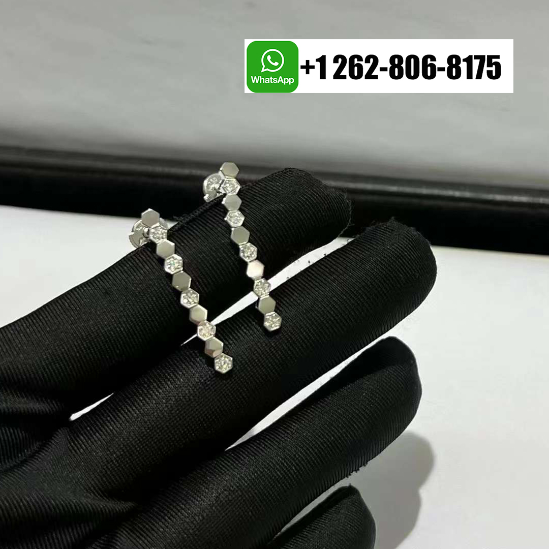 This lovely Chaumet Bee My Love Half Pavé Diamond 18k White Gold Drop Earrings will be your daily jewelry. In a radiant echo of the Maison’s past as a goldsmith, mirror-polished white gold and diamond honeycombs capture and diffuse light in a unique way, casting luminous sparkles onto the skin. The paving on both the inside and the outside of the earrings shows off all the diamonds, adding a touch of sophistication. True jewellery icons, the Bee My Love drop earrings will make you shine in everyday life or on special occasions. These pieces go beautifully with other luminous creations from the collection.