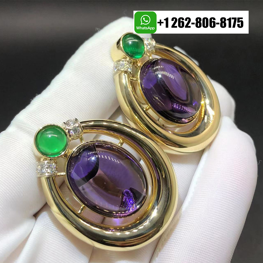 Home / David Webb Jewelry / David Webb 18k Yellow Gold Emerald Amethyst Diamond Earrings