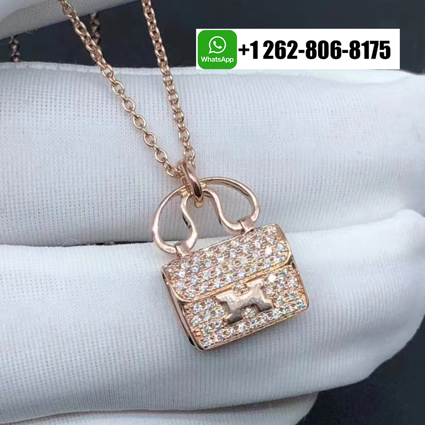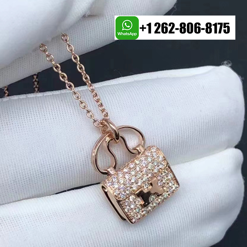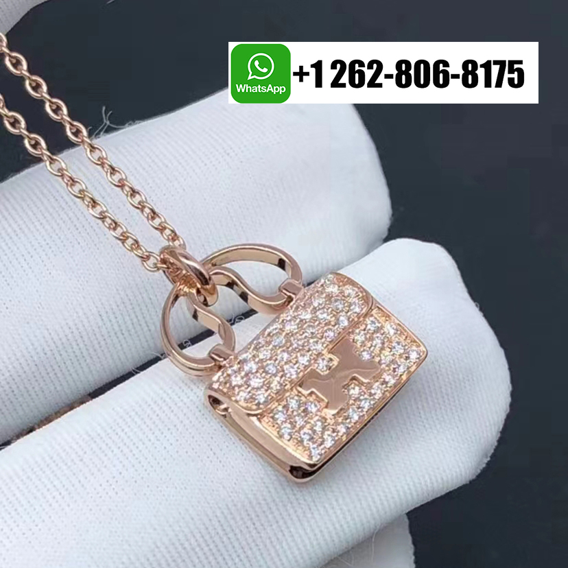 Home / Hermes Jewelry / Hermes Amulettes Constance 18k Rose Gold Pave Diamond Pendant Necklace H121312B 00