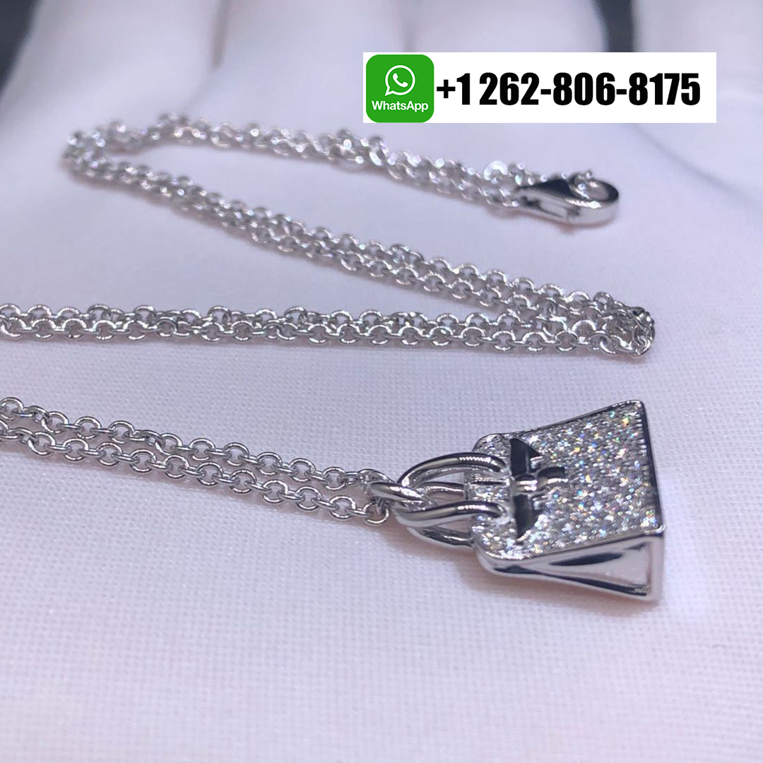 Hermes Birkin Amulette Diamond 18k White Gold Pendant Necklace