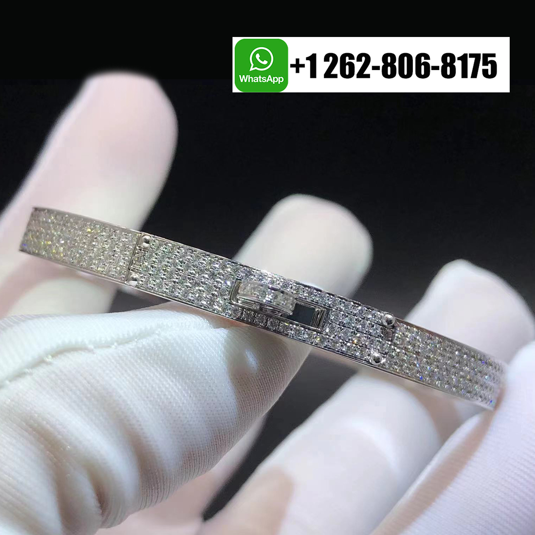 Home / Hermes Jewelry / Hermes Kelly 18K White Gold Full Pave Diamond Bracelet H109031B 00LG