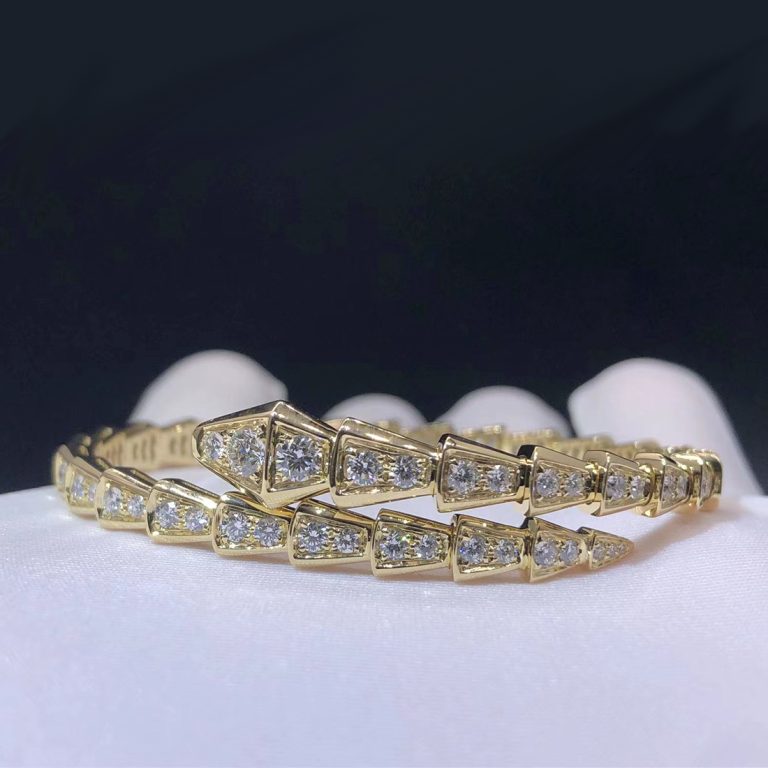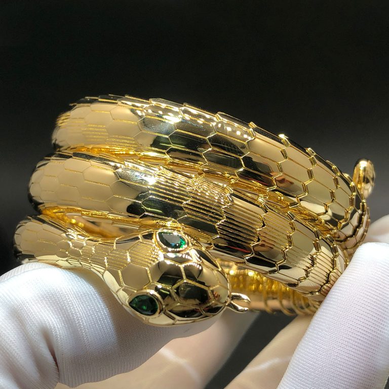 This captivating Bvlgari Serpenti 3-coil Snake bracelet is masterfully crafted in 18K yellow gold, coiling three times around the wrist in a fluid, lifelike motion. Inspired by the sensuality and power of the serpent, the design showcases meticulously polished hexagonal scales that reflect light with striking brilliance. Two vivid emerald eyes add an alluring touch of mystery, completing this iconic symbol of timeless elegance and seduction. Collection: Bvlgari Serpenti Bracelet Metal: 18k yellow gold (Weight Approx 185g in size 17) Gemstones: 2 pear-shaped emerald Whatsapp: +1 262-806-8175 Please contact Lexga to get the factory direct wholesale price Your happiness is […]